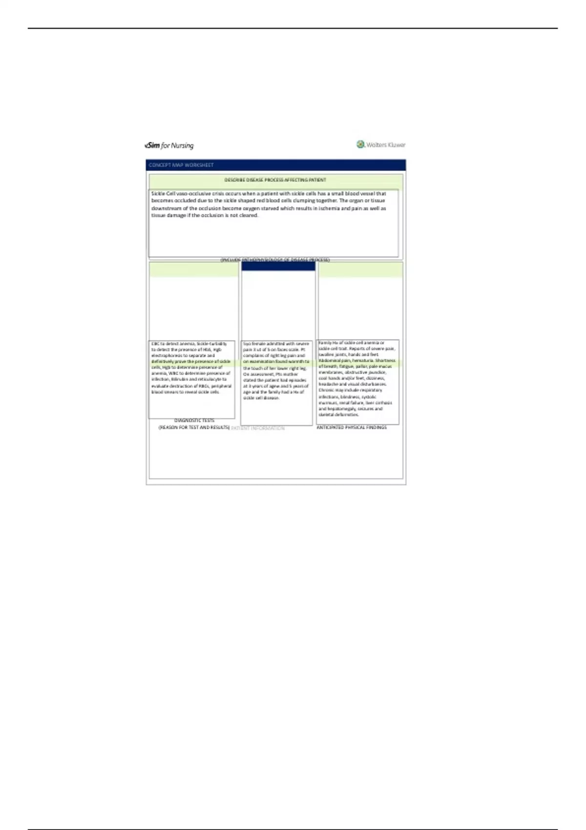 blood smears to reveal sickle cells. age and the family had a Hx of Chronic may include respiratory