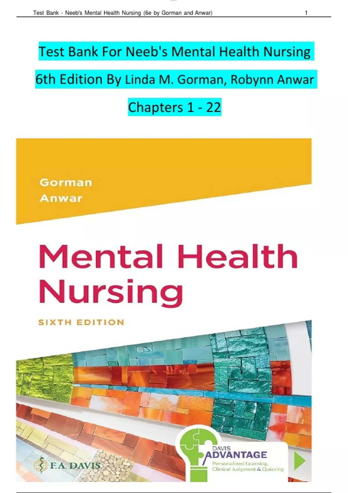 Test Bank For Neeb's Mental Health Nursing 6th Edition By Linda M. Gorman, Robynn Anwar Chapters 1 - 22