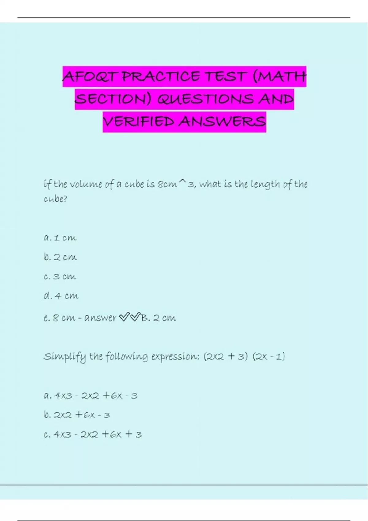 AFOQT PRACTICE TEST (MATH SECTION) QUESTIONS AND VERIFIED ANSWERS