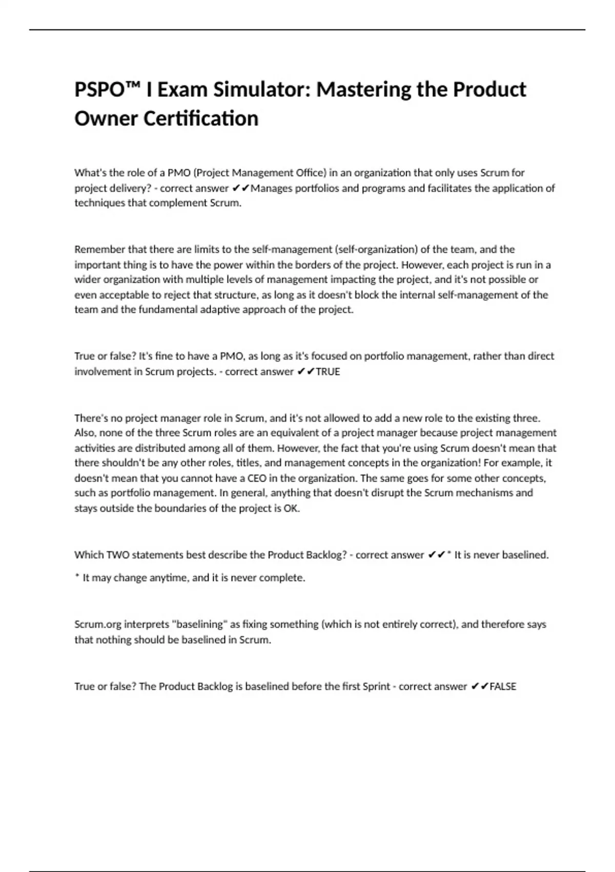 True or false? The Product Backlog is baselined before the first Sprint - correct answer ✔✔FALSE