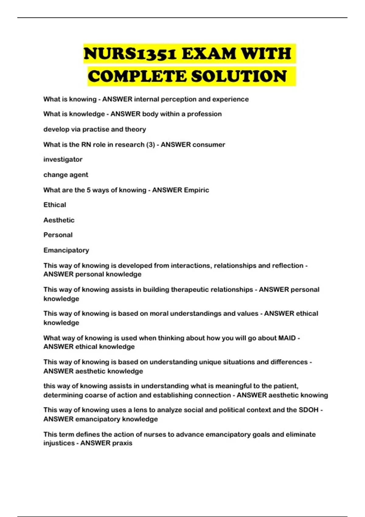 NURS1351 EXAM WITH COMPLETE SOLUTION ...