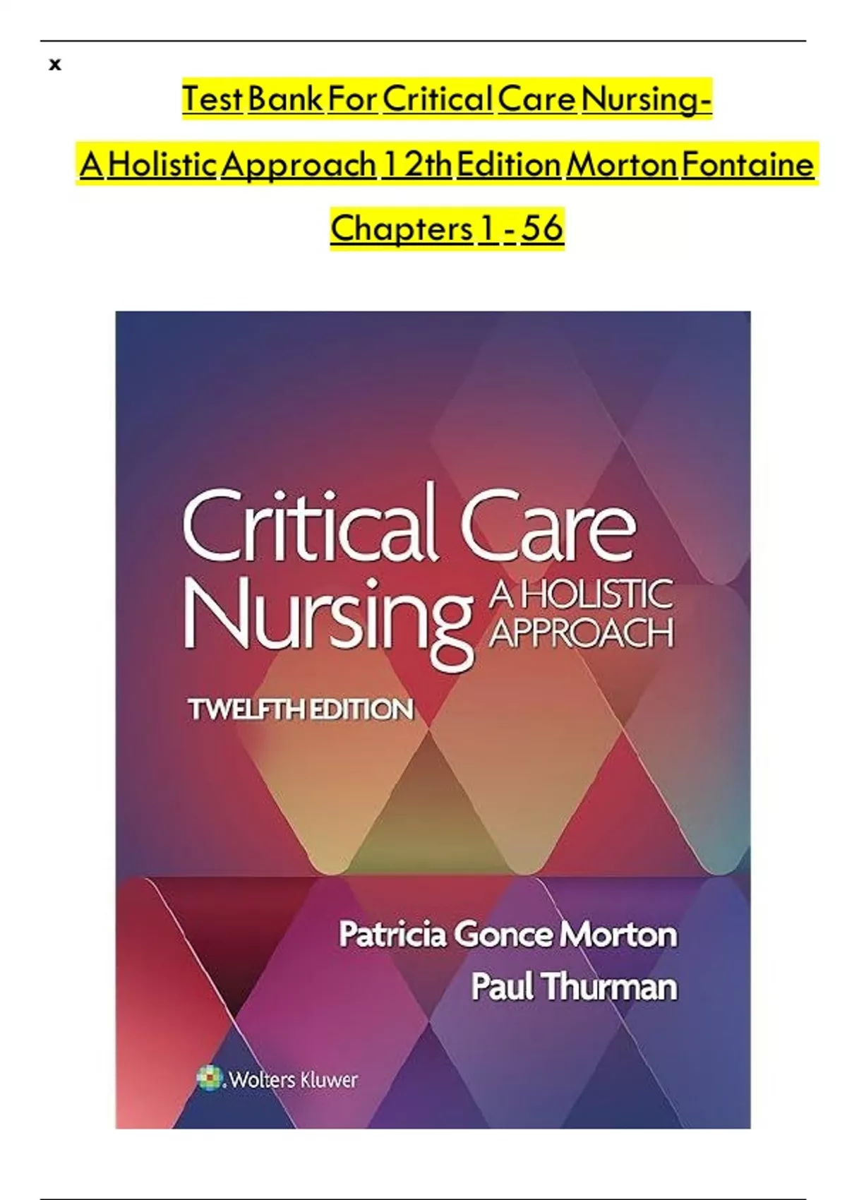 Test bank for critical care nursing a holistic approach 11th edition morton fontaine