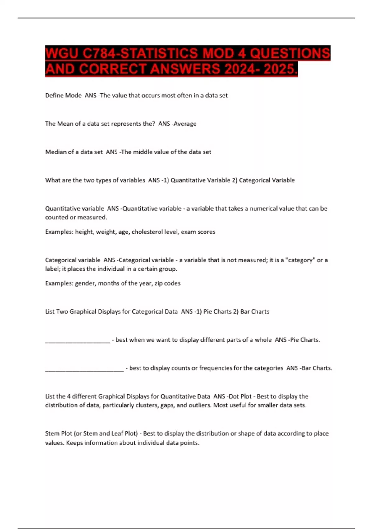 List the 4 different Graphical Displays for Quantitative Data ANS -Dot Plot - Best to display the