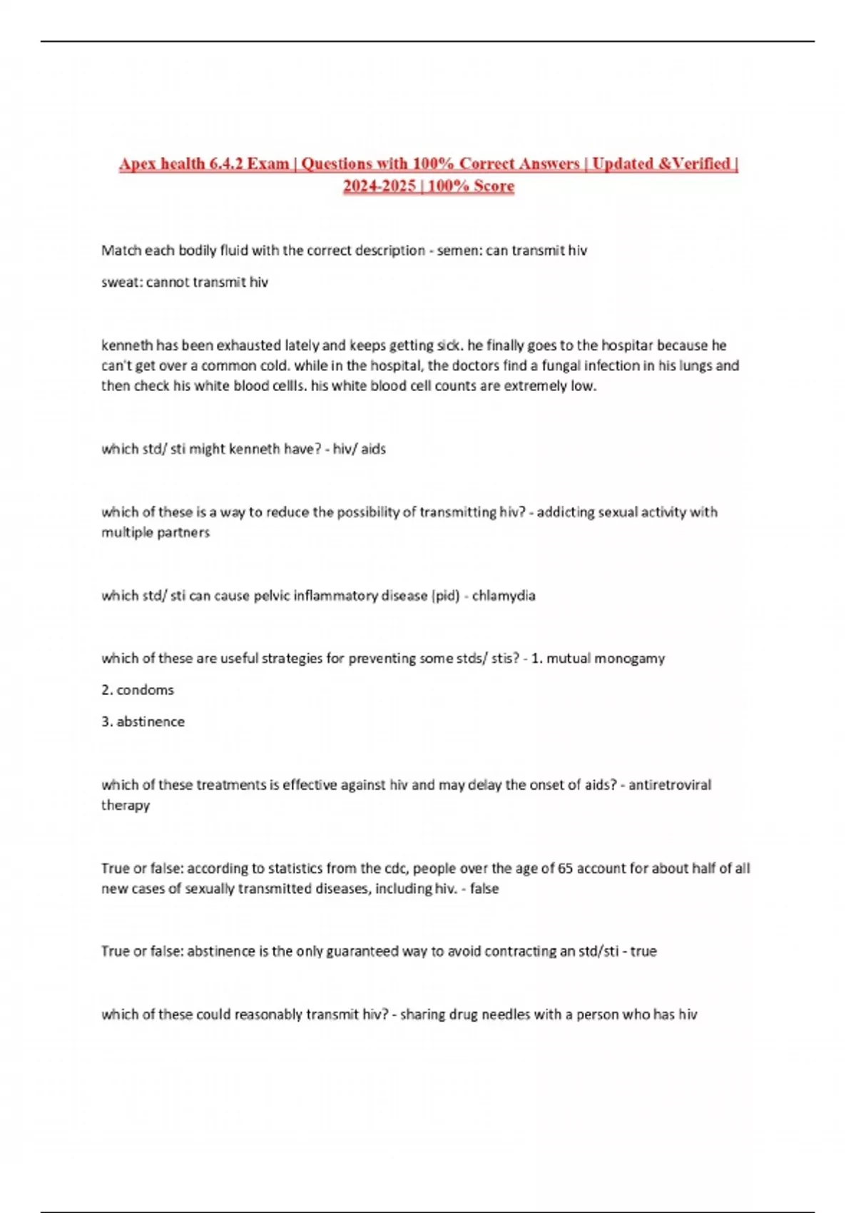 Apex health 6.4.2 Exam | Questions with 100% Correct Answers | Updated &Verified | | 100% Score