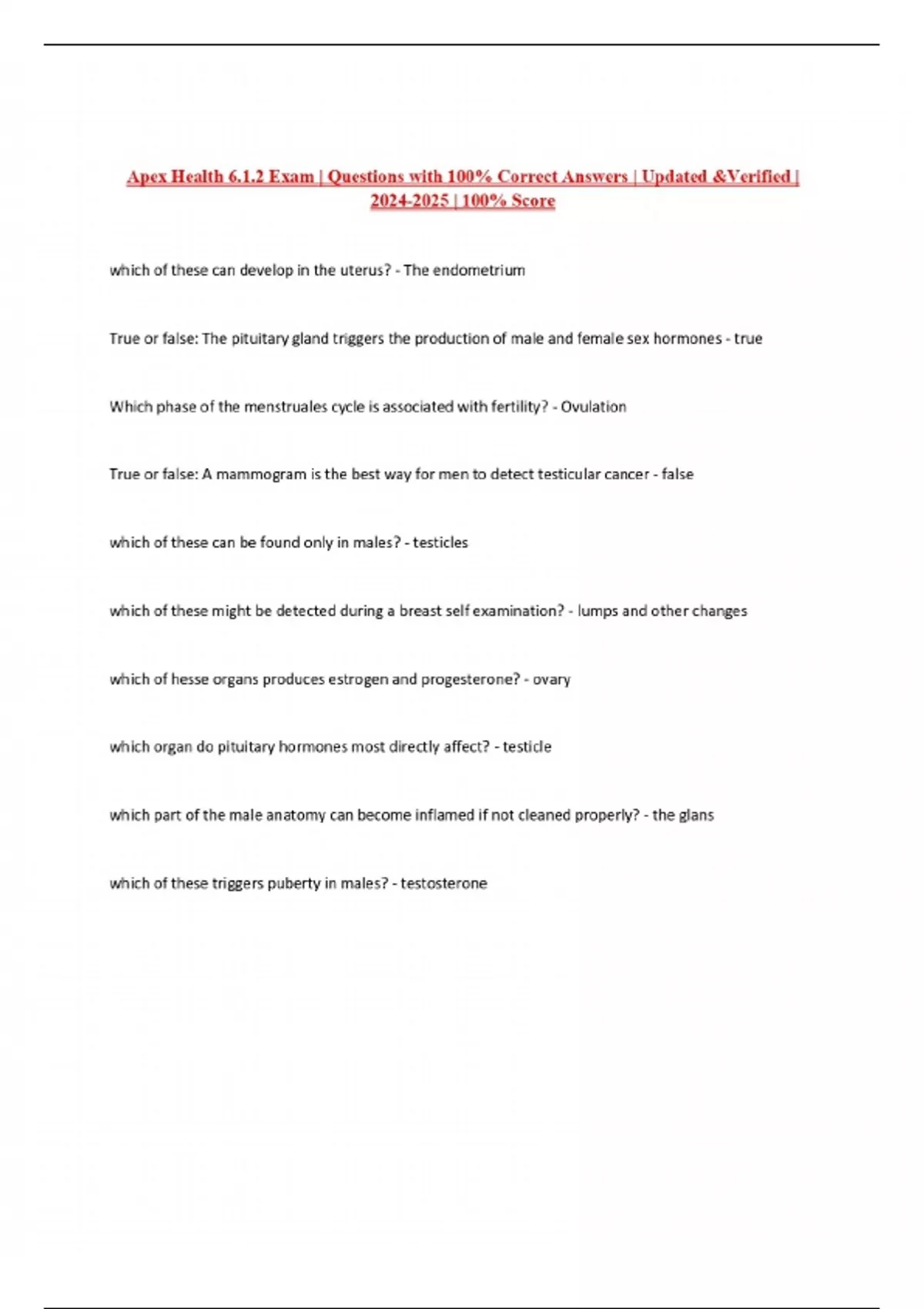 Apex Health 6.1.2 Exam | Questions with 100% Correct Answers | Updated &Verified | | 100% Score