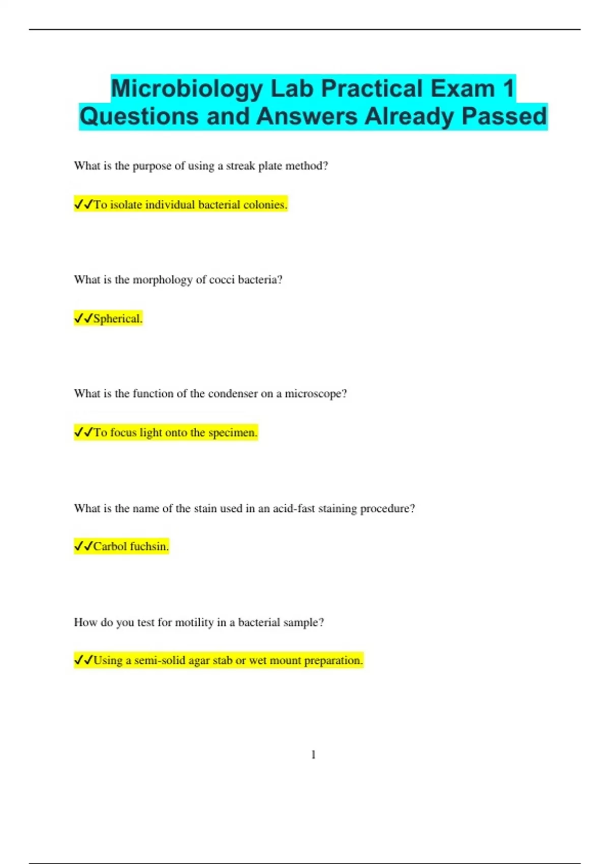 ✔✔To adhere the bacteria to the slide and kill them.