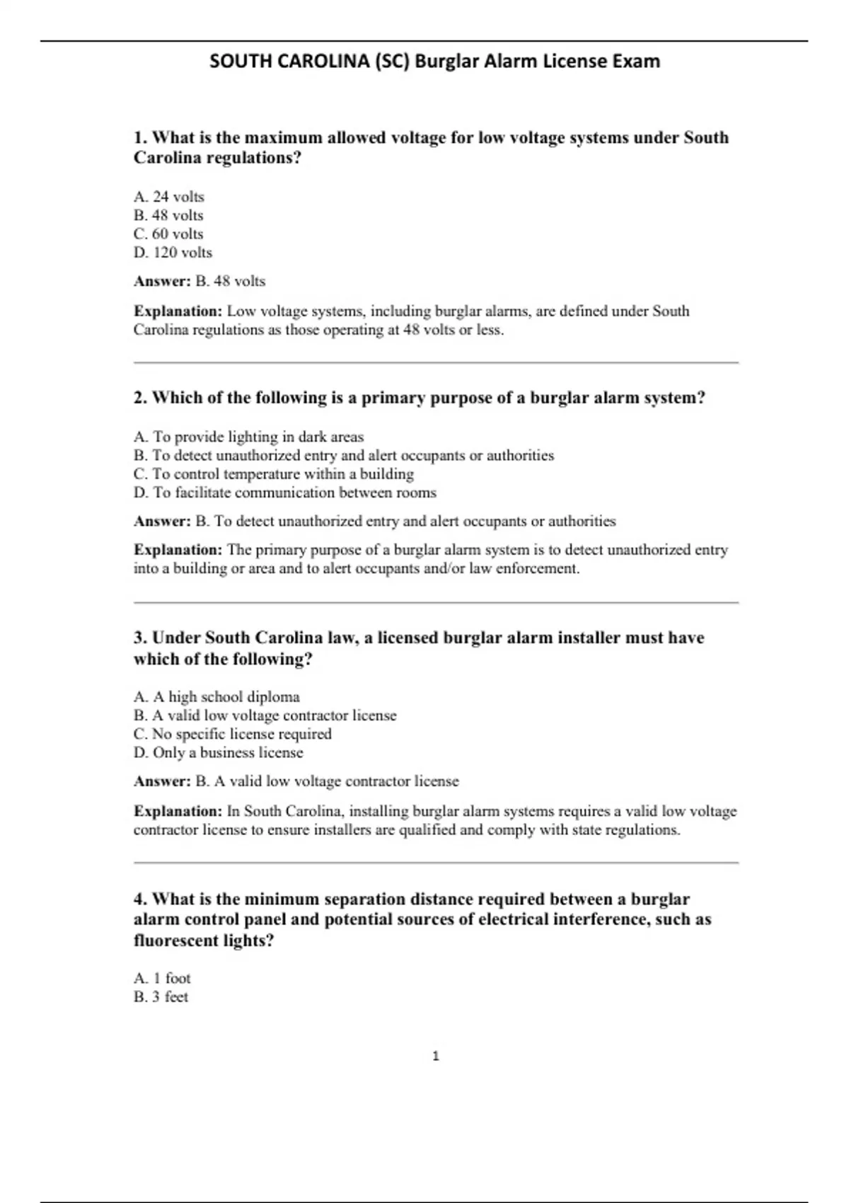 SOUTH CAROLINA (SC) Burglar Alarm License Practice Exam