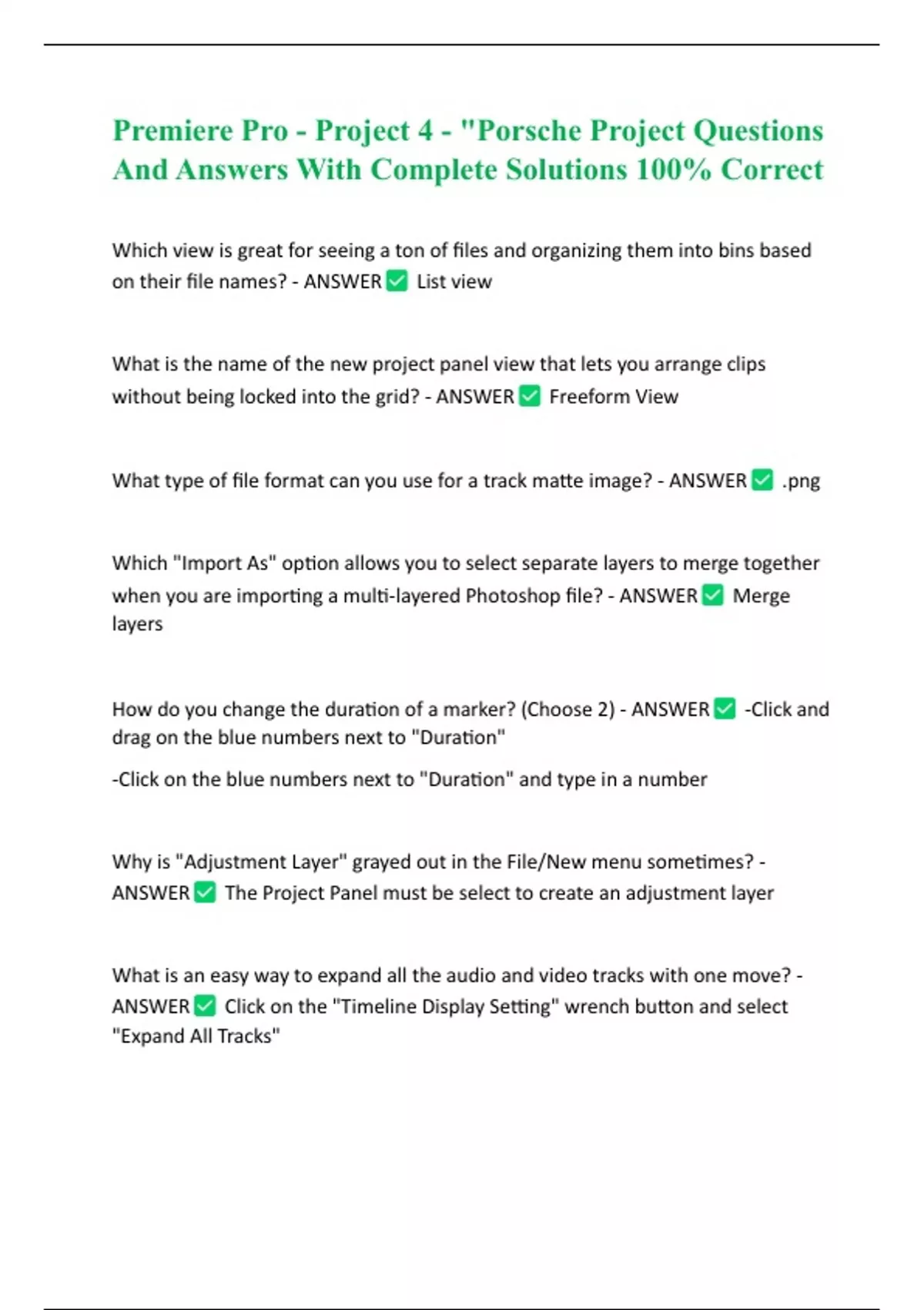 Premiere Pro - Project 4 - "Porsche Project Questions And Answers With Complete Solutions 100% Correct