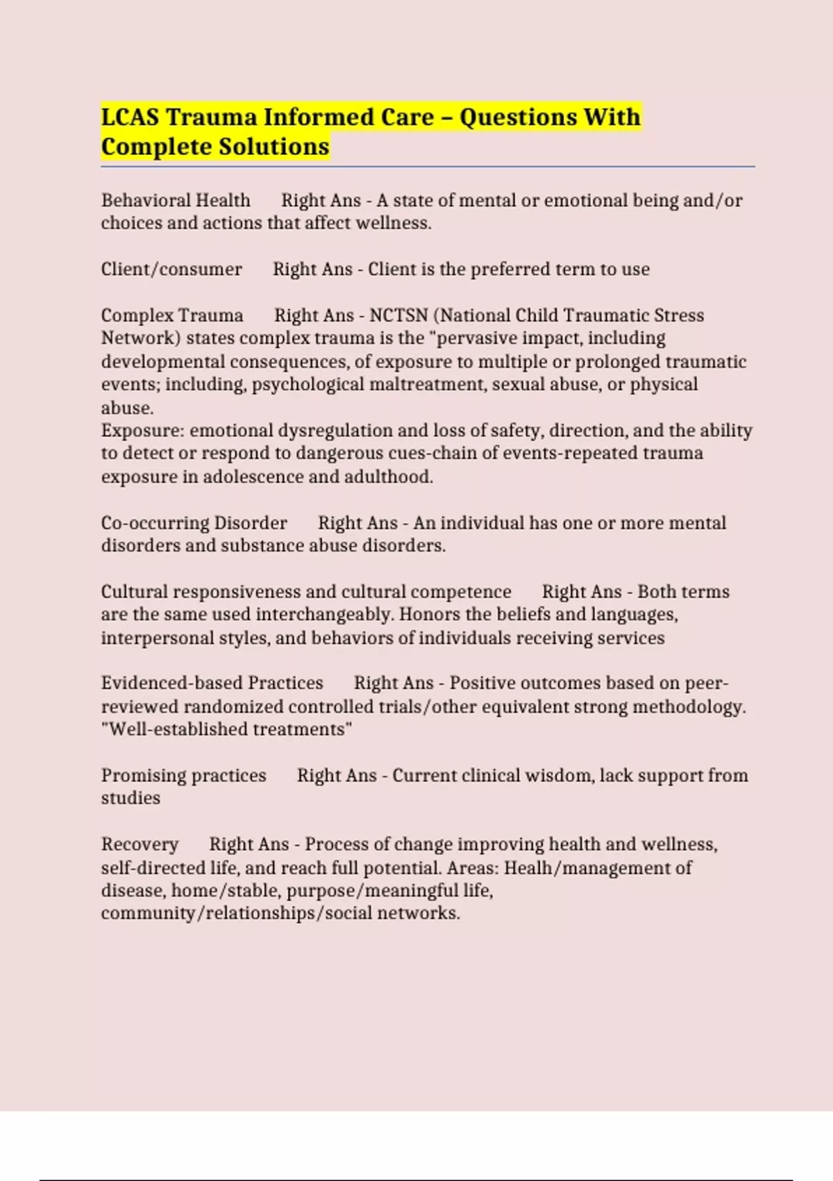 Trauma-specific treatment services Right Ans - Evidenced based