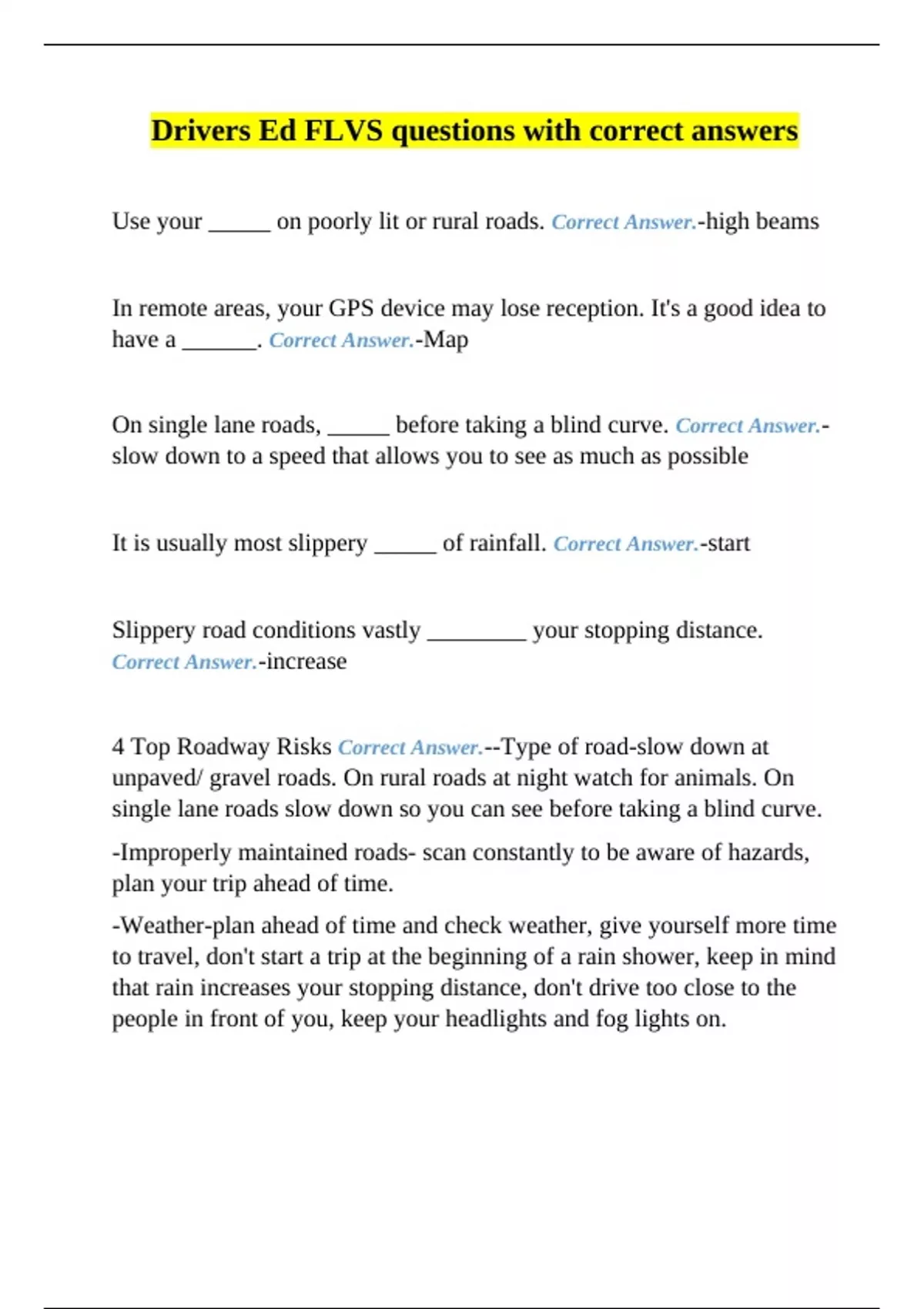 4 Top Roadway Risks Correct Answer.--Type of road-slow down at