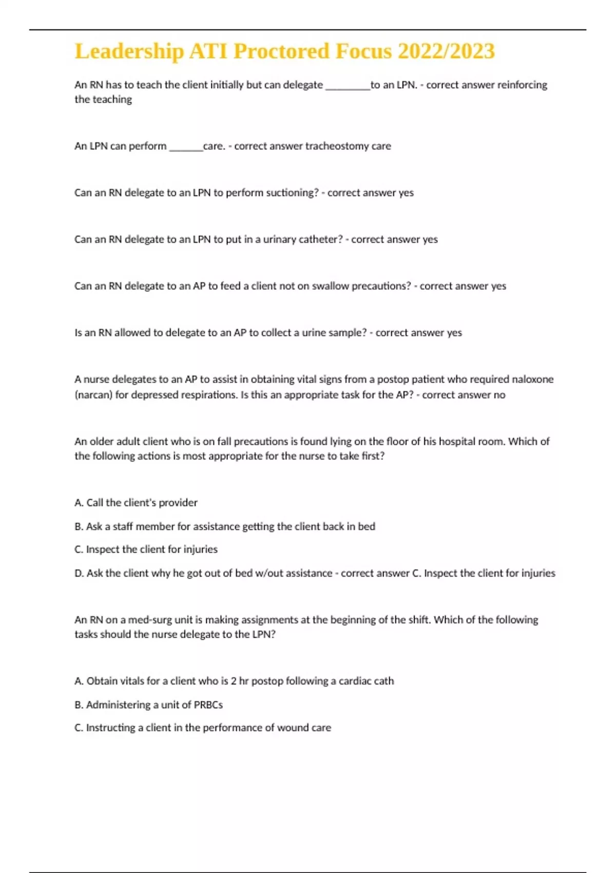 , Leadership ATI Proctored Focus 2022/2023