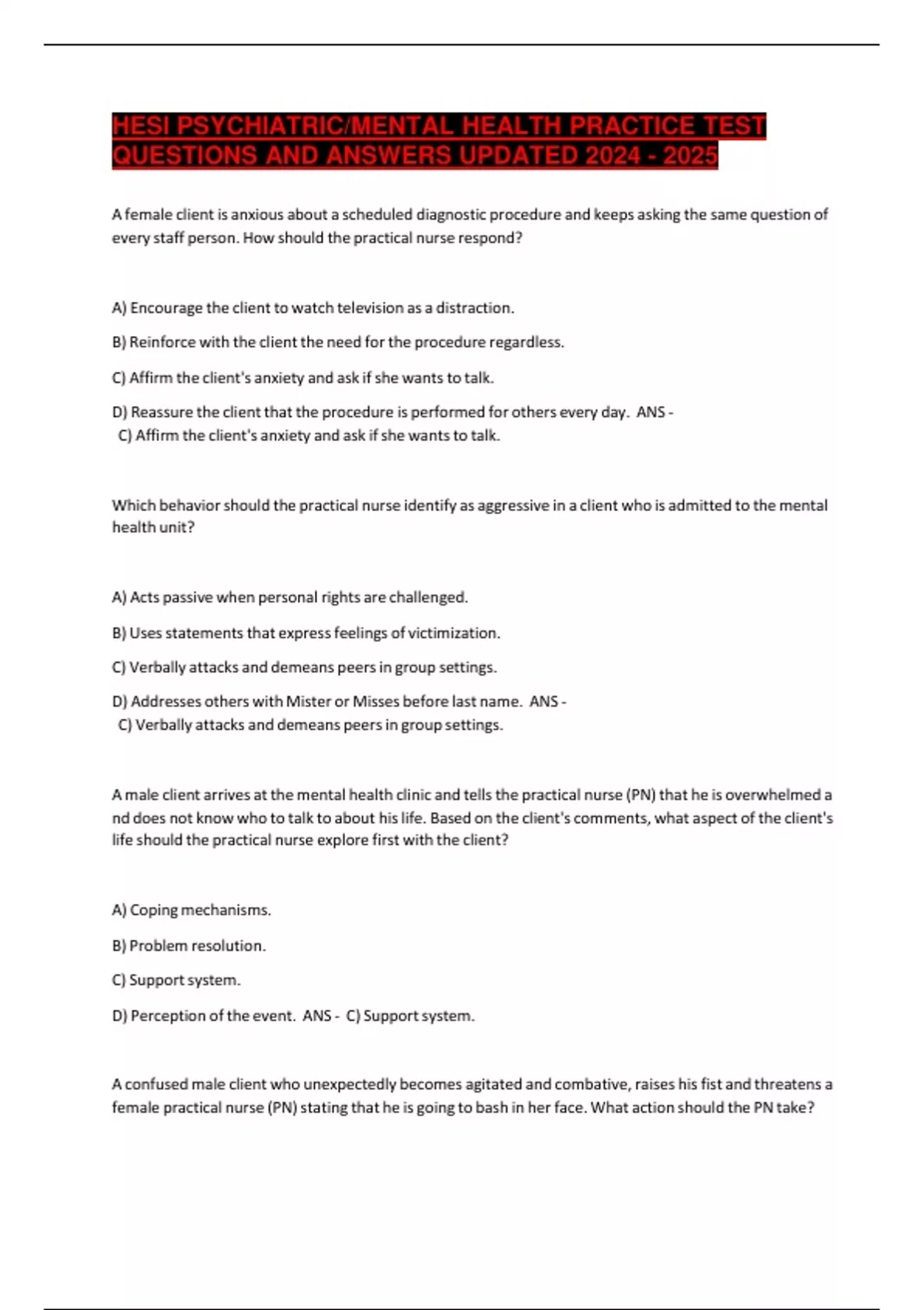 QUESTIONS AND ANSWERS UPDATED 2024 - 2025