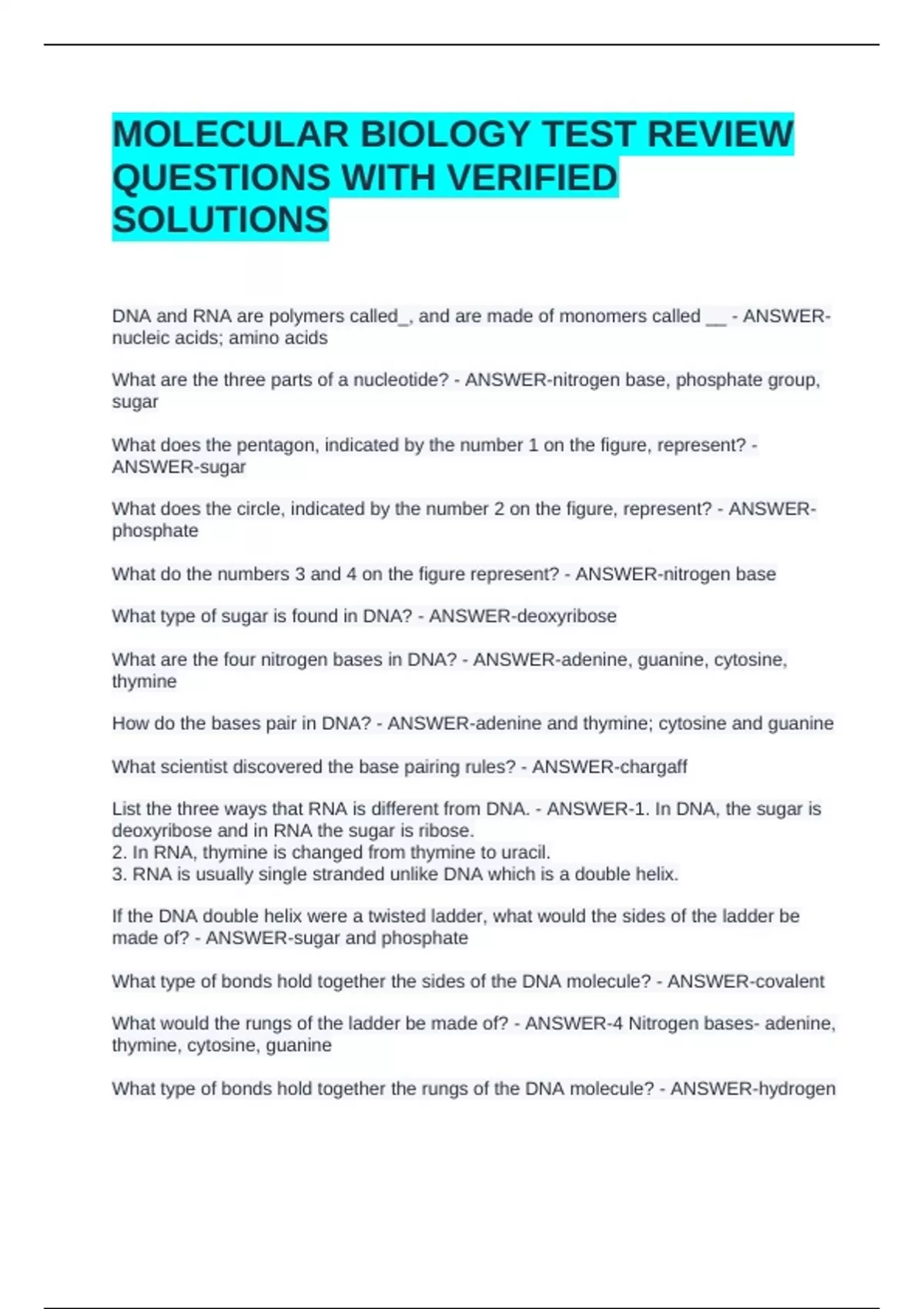 What type of bonds hold together the rungs of the DNA molecule? - ANSWER-hydrogen