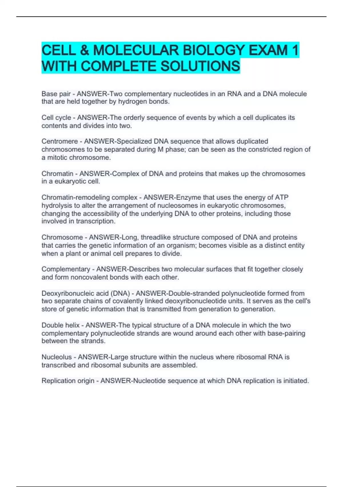 Chromatin - ANSWER-Complex of DNA and proteins that makes up the chromosomes