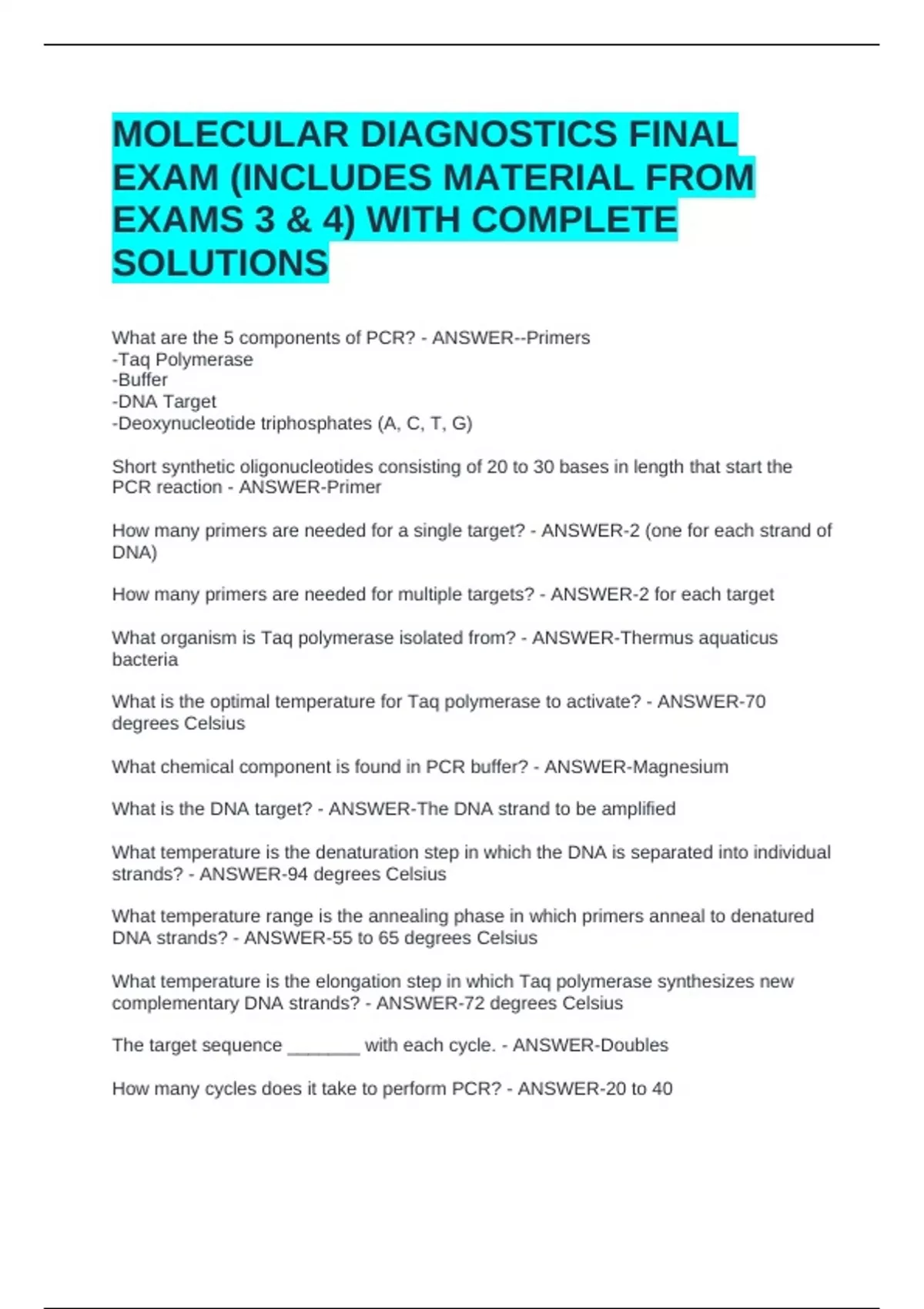 What is the DNA target? - ANSWER-The DNA strand to be amplified