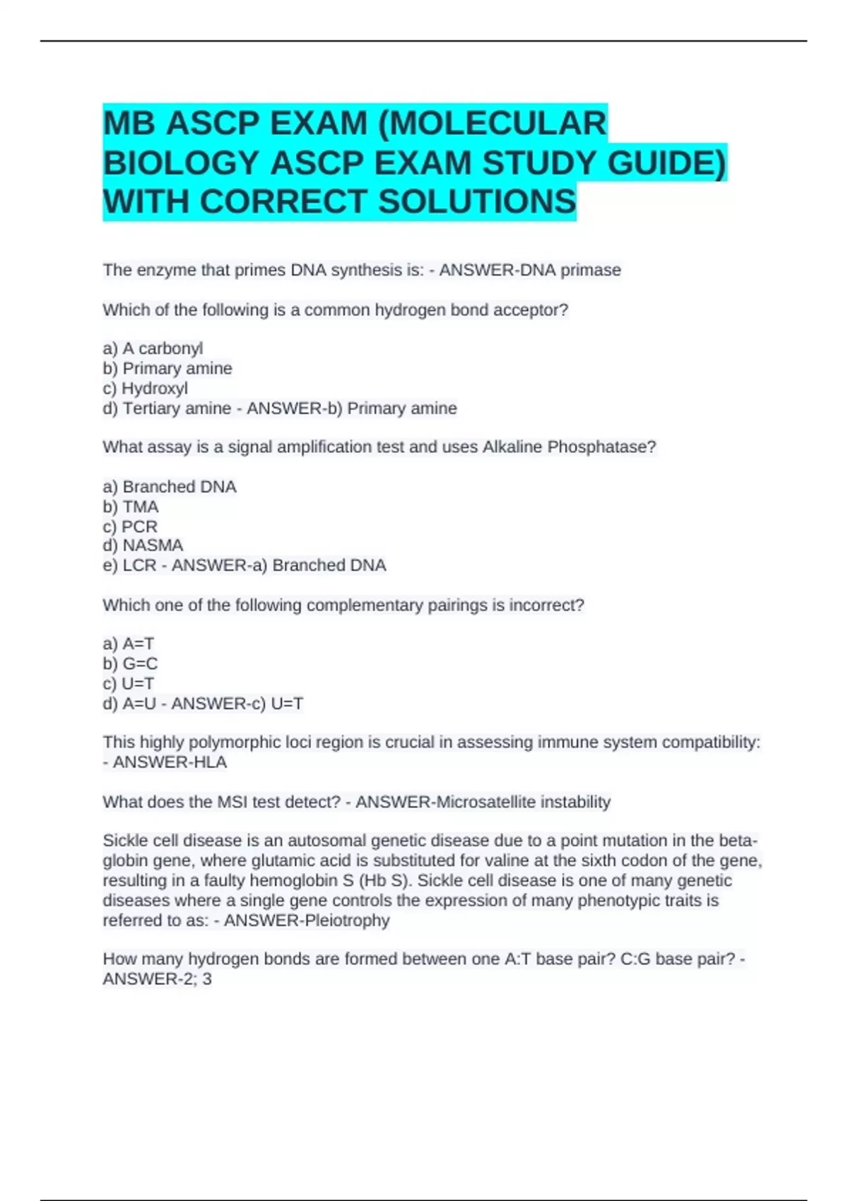 BIOLOGY ASCP EXAM STUDY GUIDE)