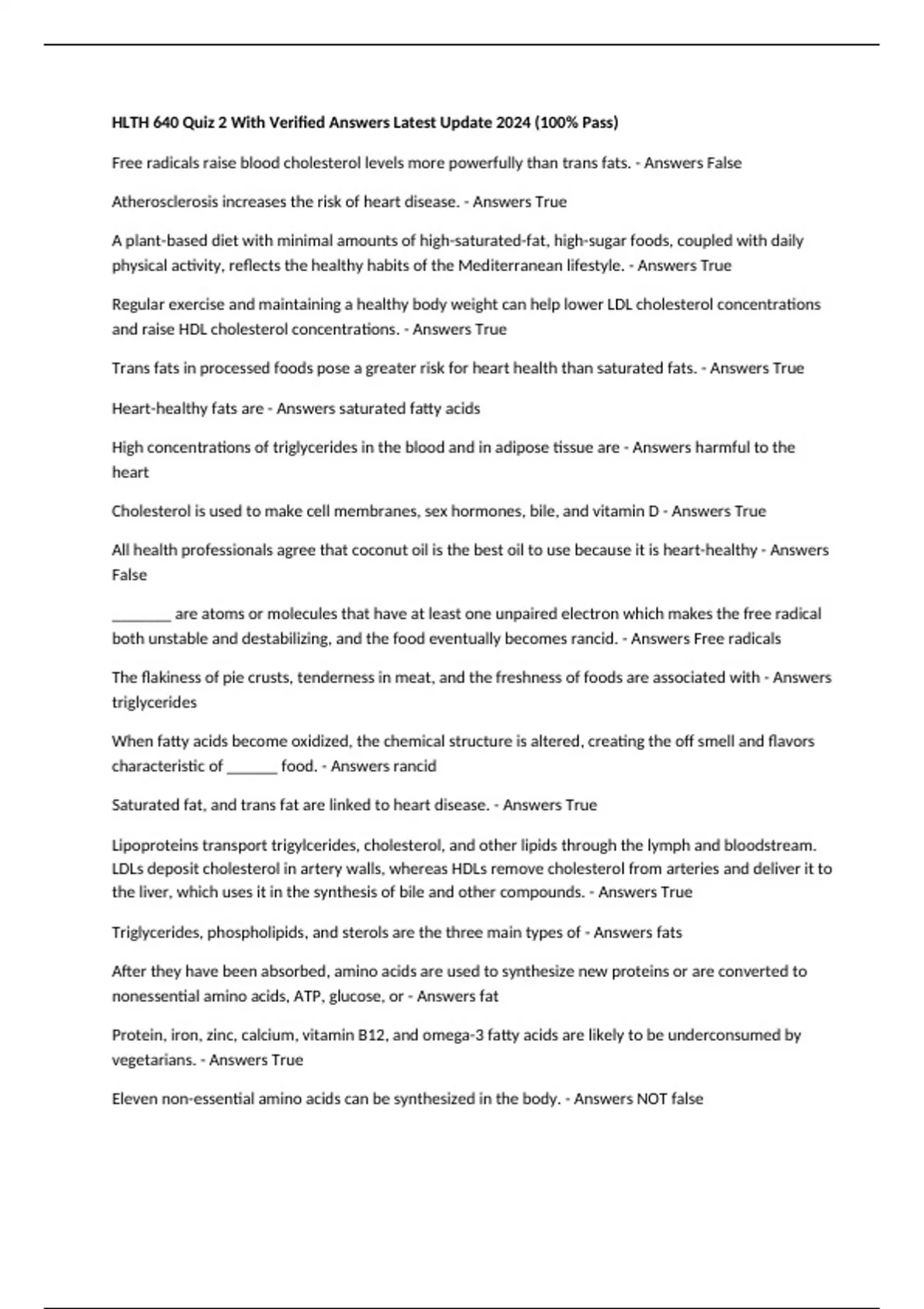 Saturated fat, and trans fat are linked to heart disease. - Answers True