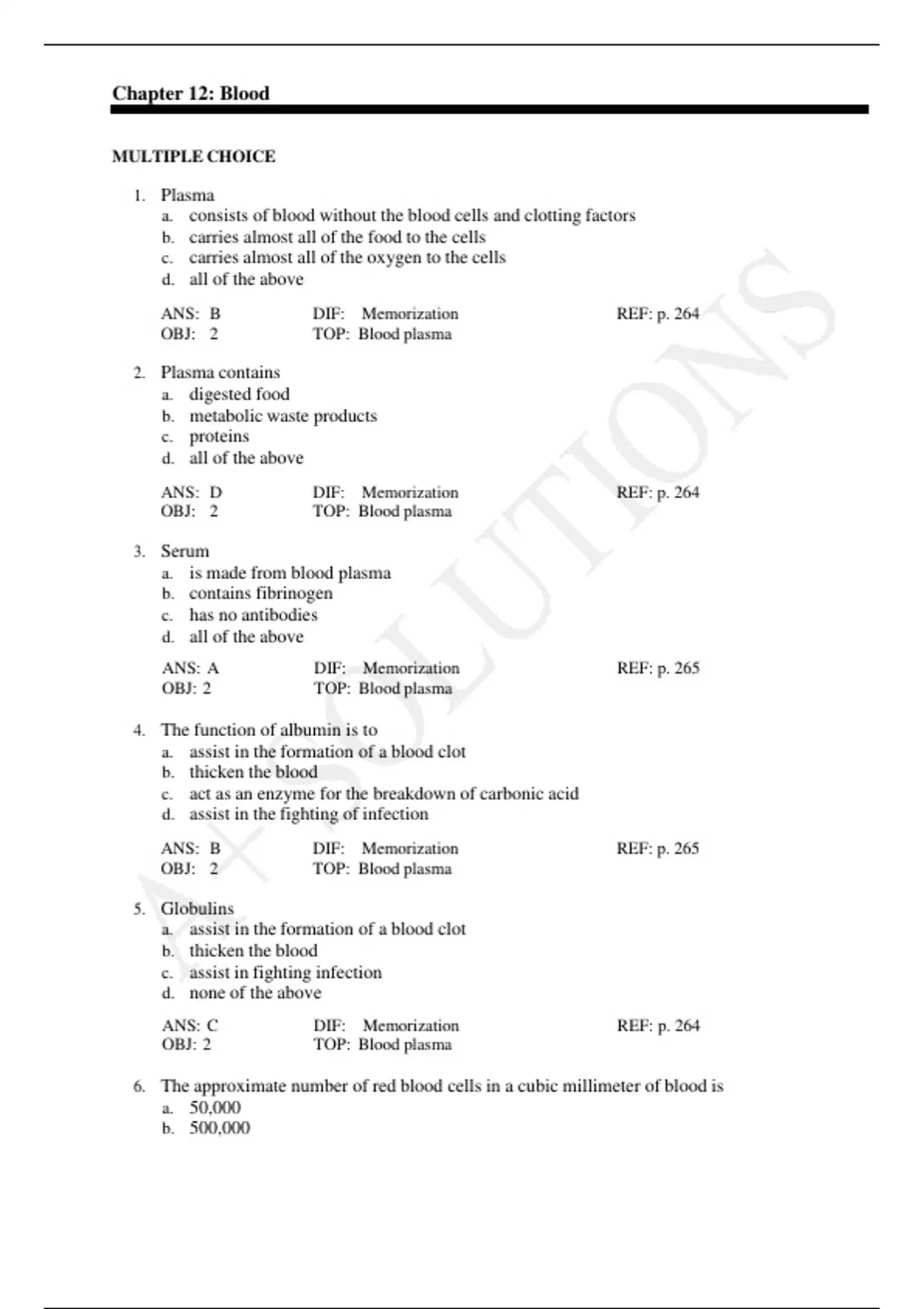 6. The approximate number of red blood cells in a cubic millimeter of blood is