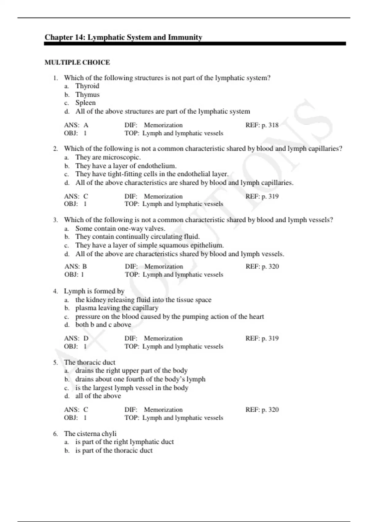 OBJ: 1 TOP: Lymph and lymphatic vessels