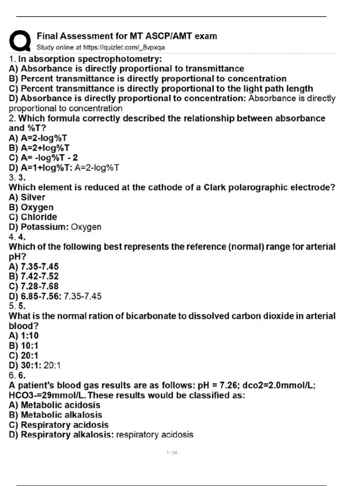1. In absorption spectrophotometry: A) Absorbance is directly proportional to transmittance B) Percent transmittance is directly proportional to concentration C) Percent transmittance is directly proportional to the light path length D) Absorbance is directly proportional to concentration: Absorbance is directly proportional to concentration 2. Which formula correctly described the relationship between absorbance and %T?