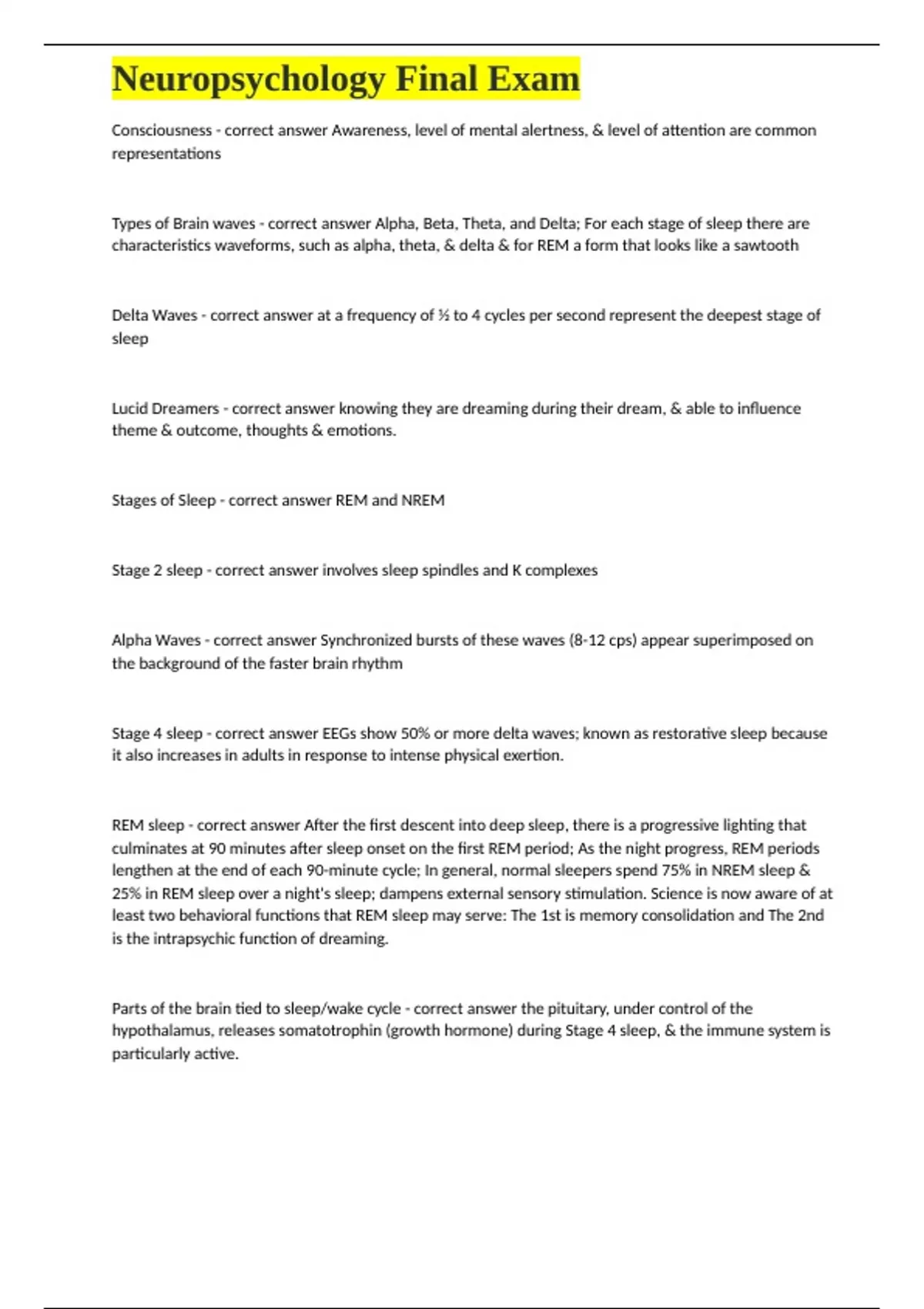 Types of Brain waves - correct answer Alpha, Beta, Theta, and Delta; For each stage of sleep there are