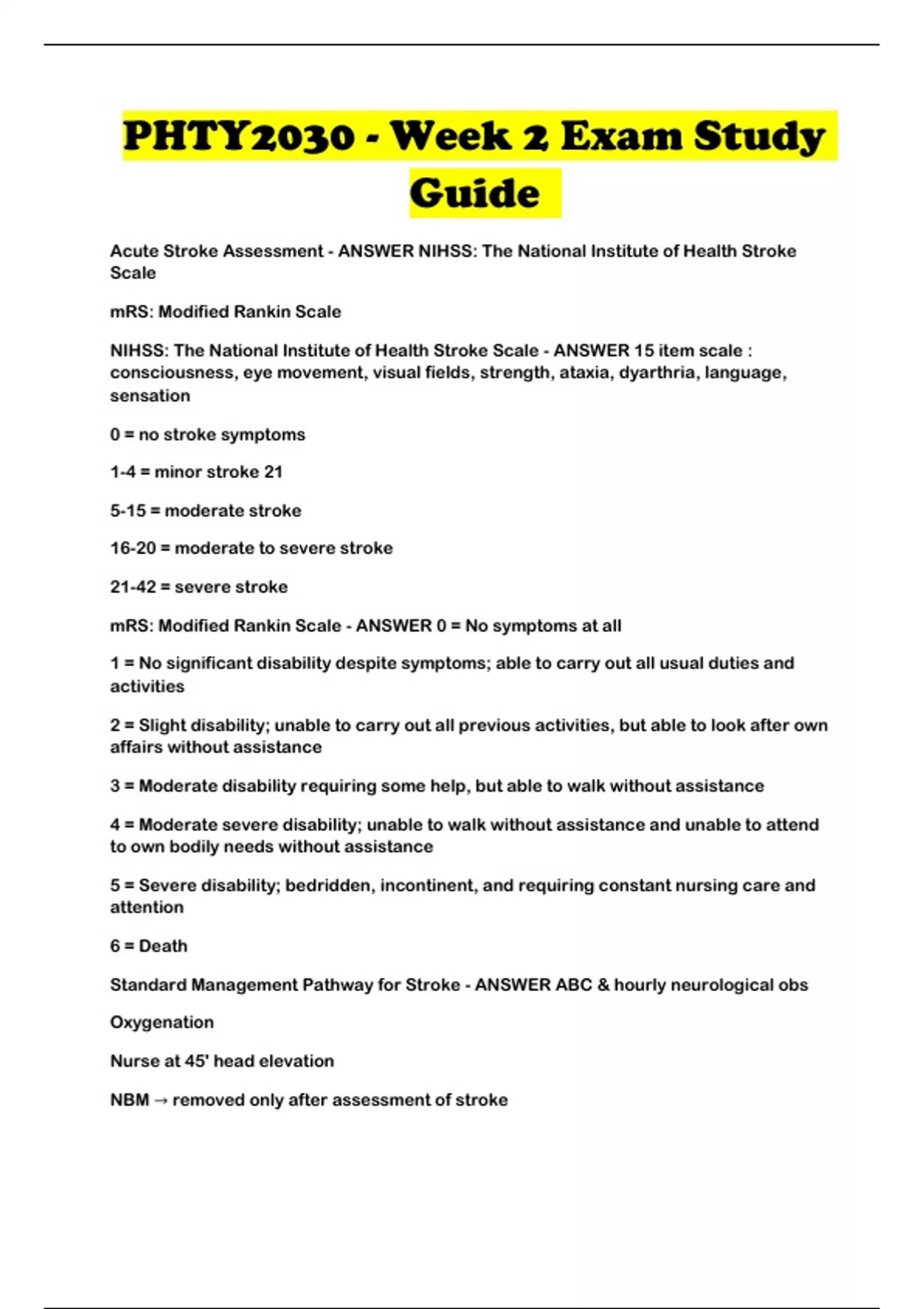 Acute Stroke Assessment - ANSWER NIHSS: The National Institute of Health Stroke