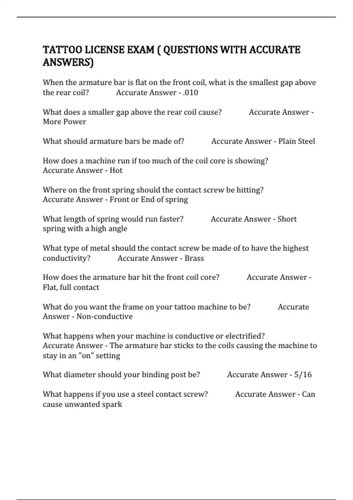 TATTOO LICENSE EXAM ( QUESTIONS WITH ACCURATE