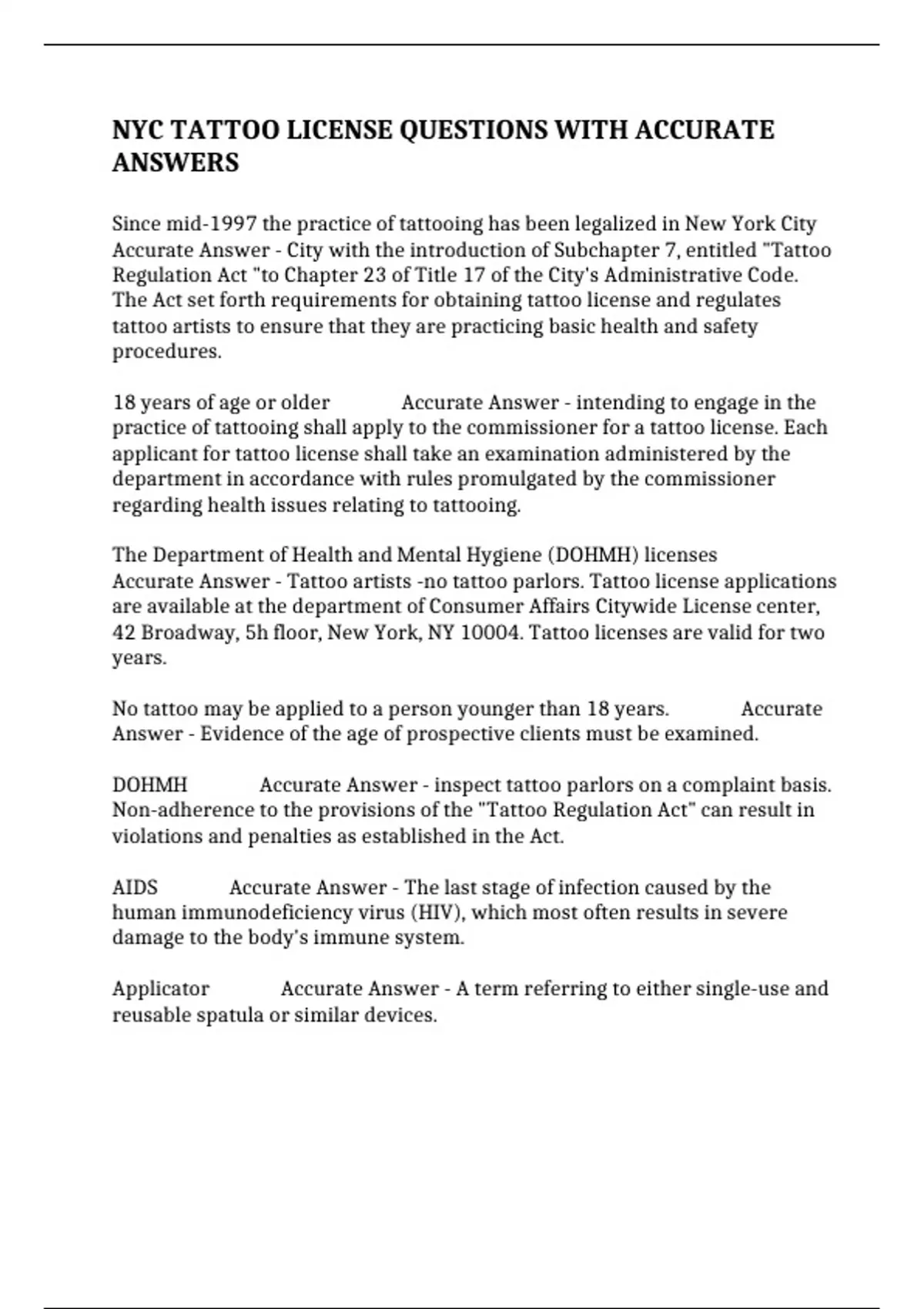 Accurate Answer - Tattoo artists -no tattoo parlors. Tattoo license applications