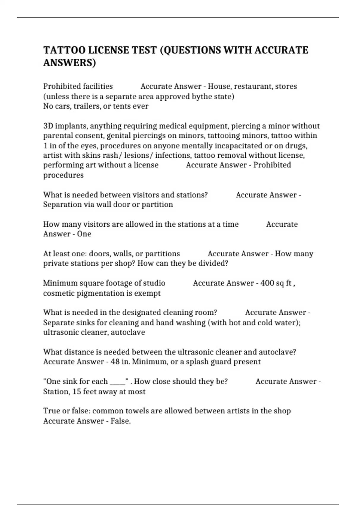 TATTOO LICENSE TEST (QUESTIONS WITH ACCURATE