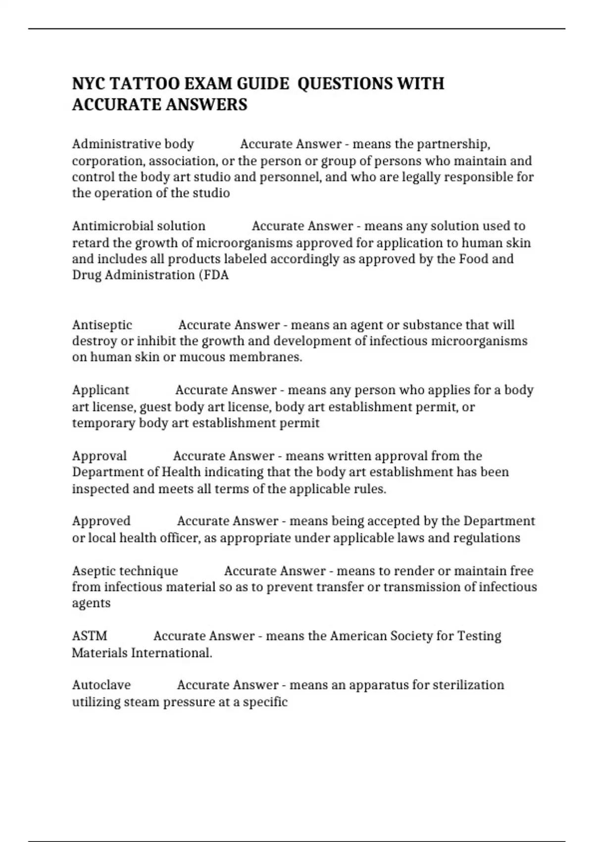 ASTM Accurate Answer - means the American Society for Testing