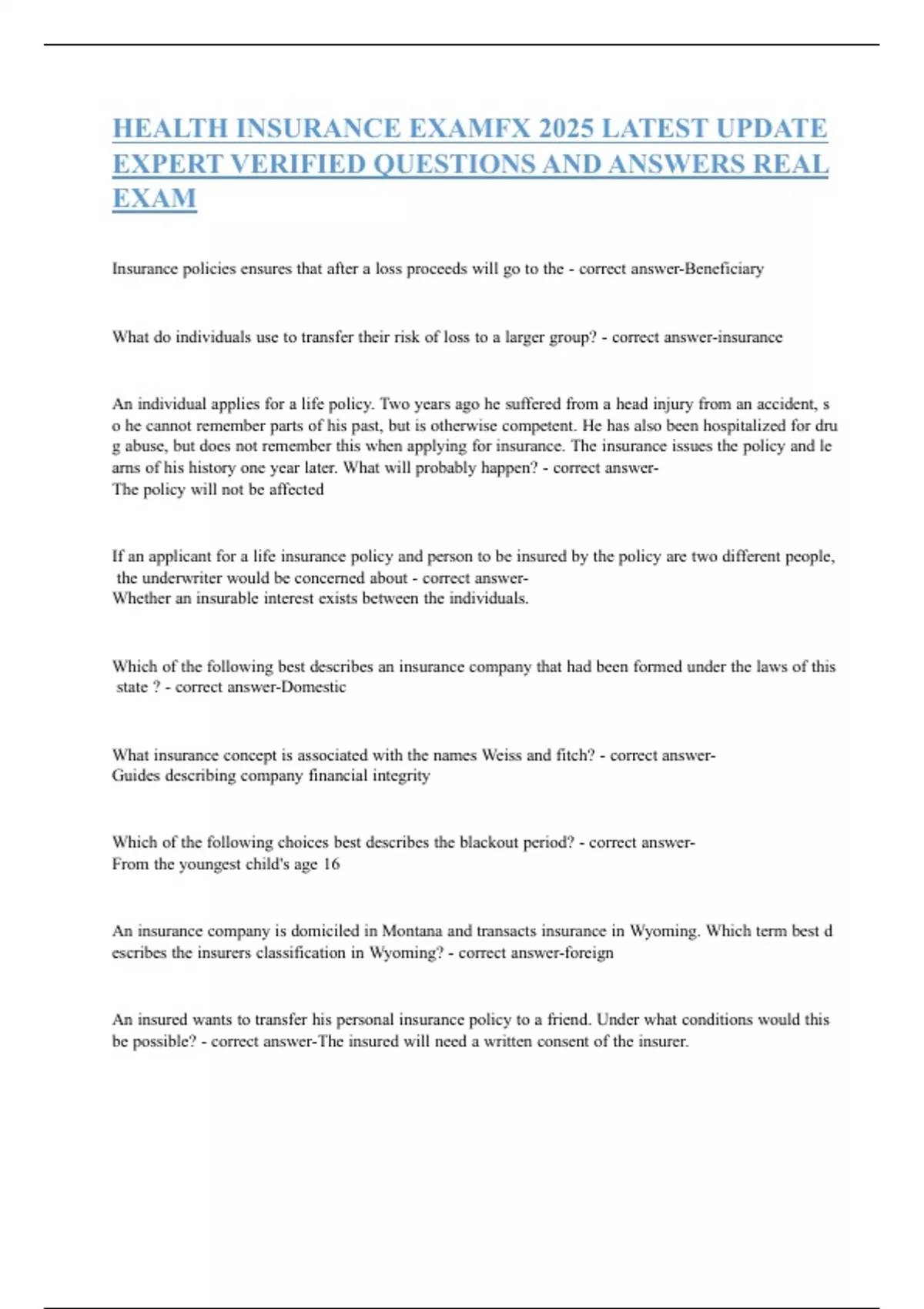 HEALTH INSURANCE EXAMFX 2025 LATEST UPDATE