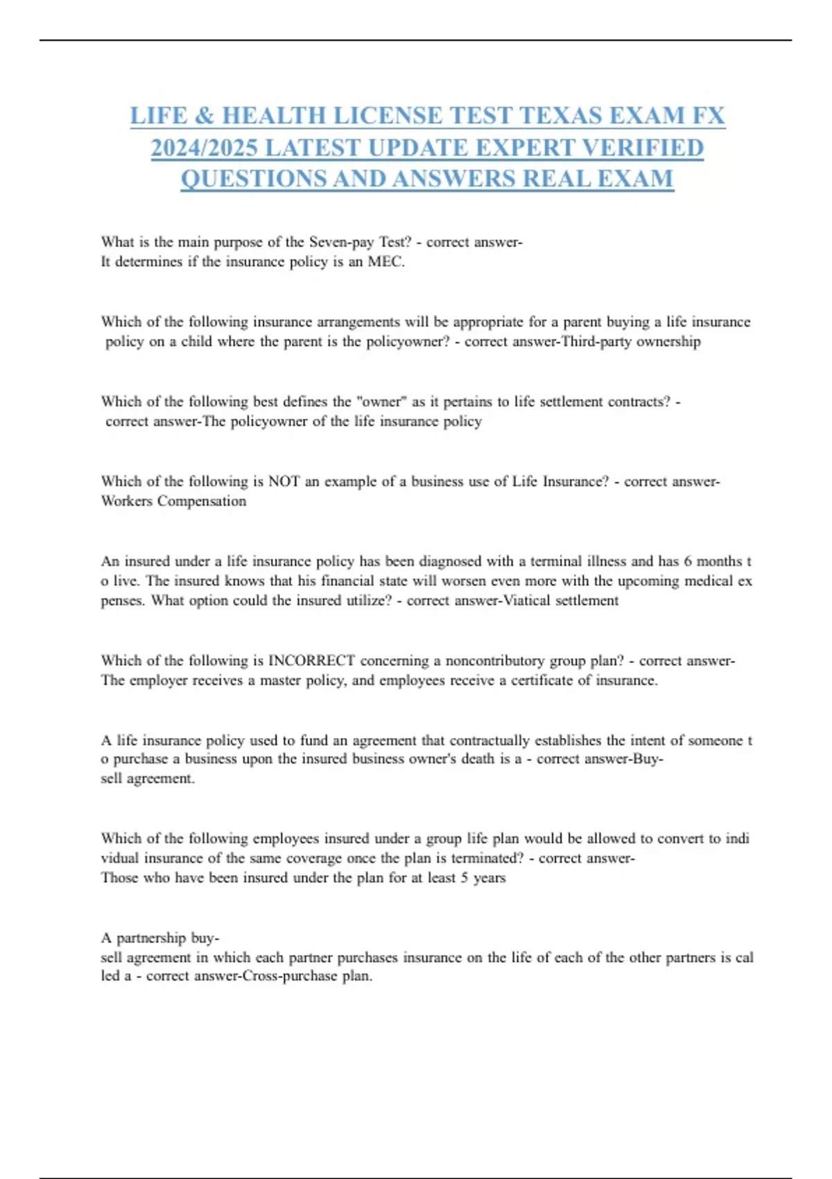 LIFE & HEALTH LICENSE TEST TEXAS EXAM FX