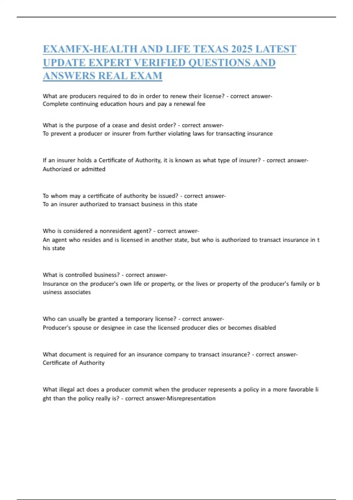 EXAMFX-HEALTH AND LIFE TEXAS 2025 LATEST