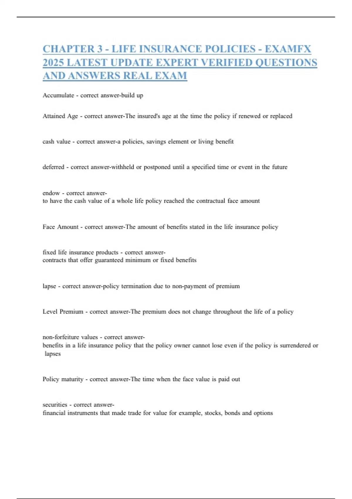 CHAPTER 3 - LIFE INSURANCE POLICIES - EXAMFX