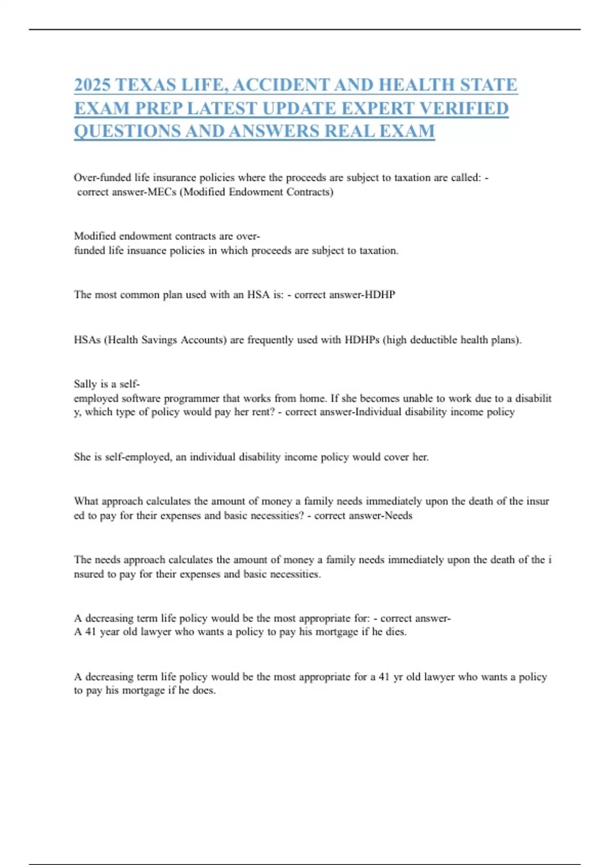 2025 TEXAS LIFE, ACCIDENT AND HEALTH STATE