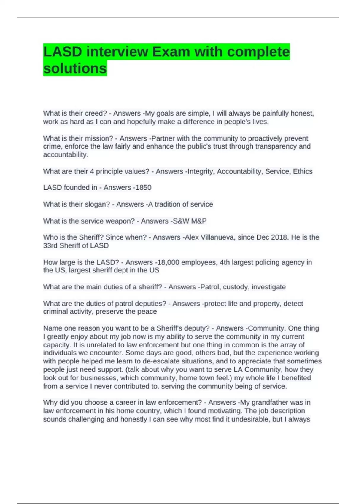 LASD interview Exam with complete