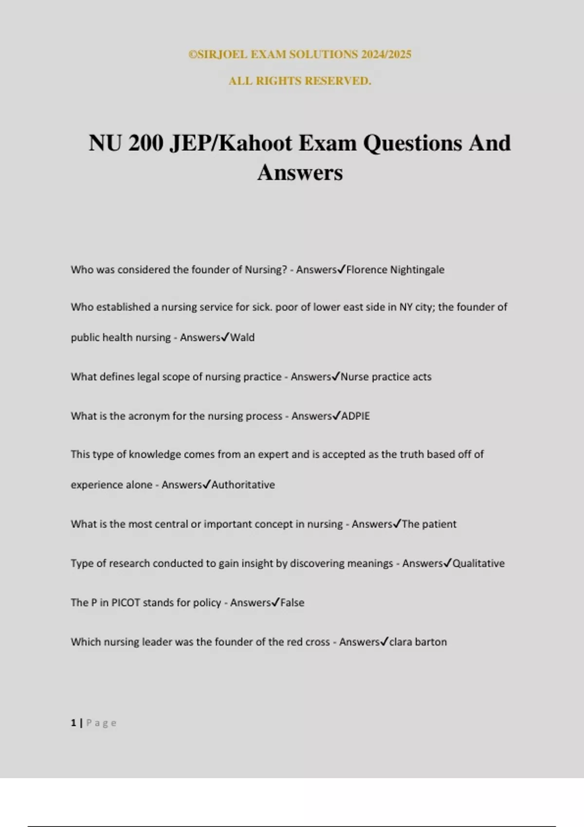 NU 200 JEP/Kahoot Exam Questions And Answers