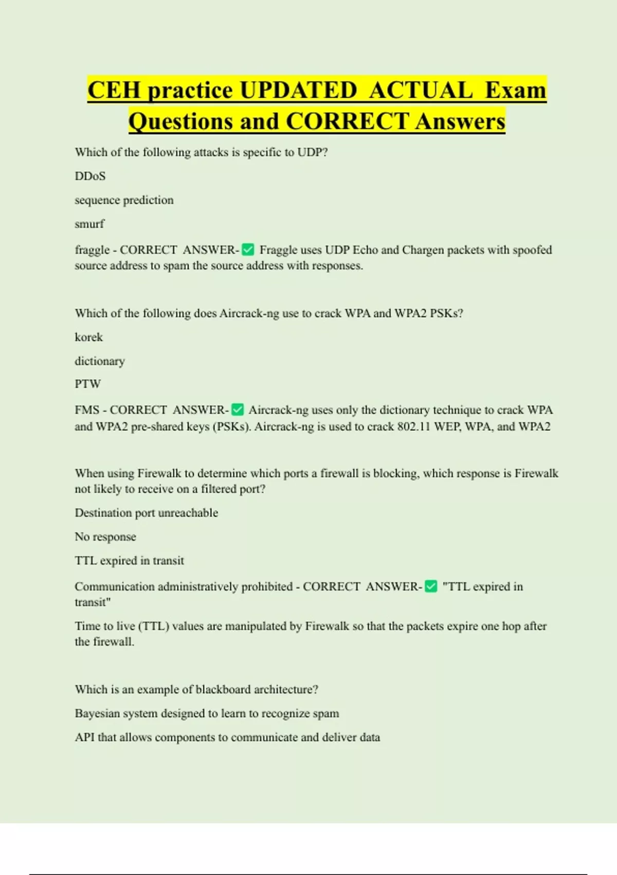 CEH practice UPDATED ACTUAL Exam Questions and CORRECT Answers
