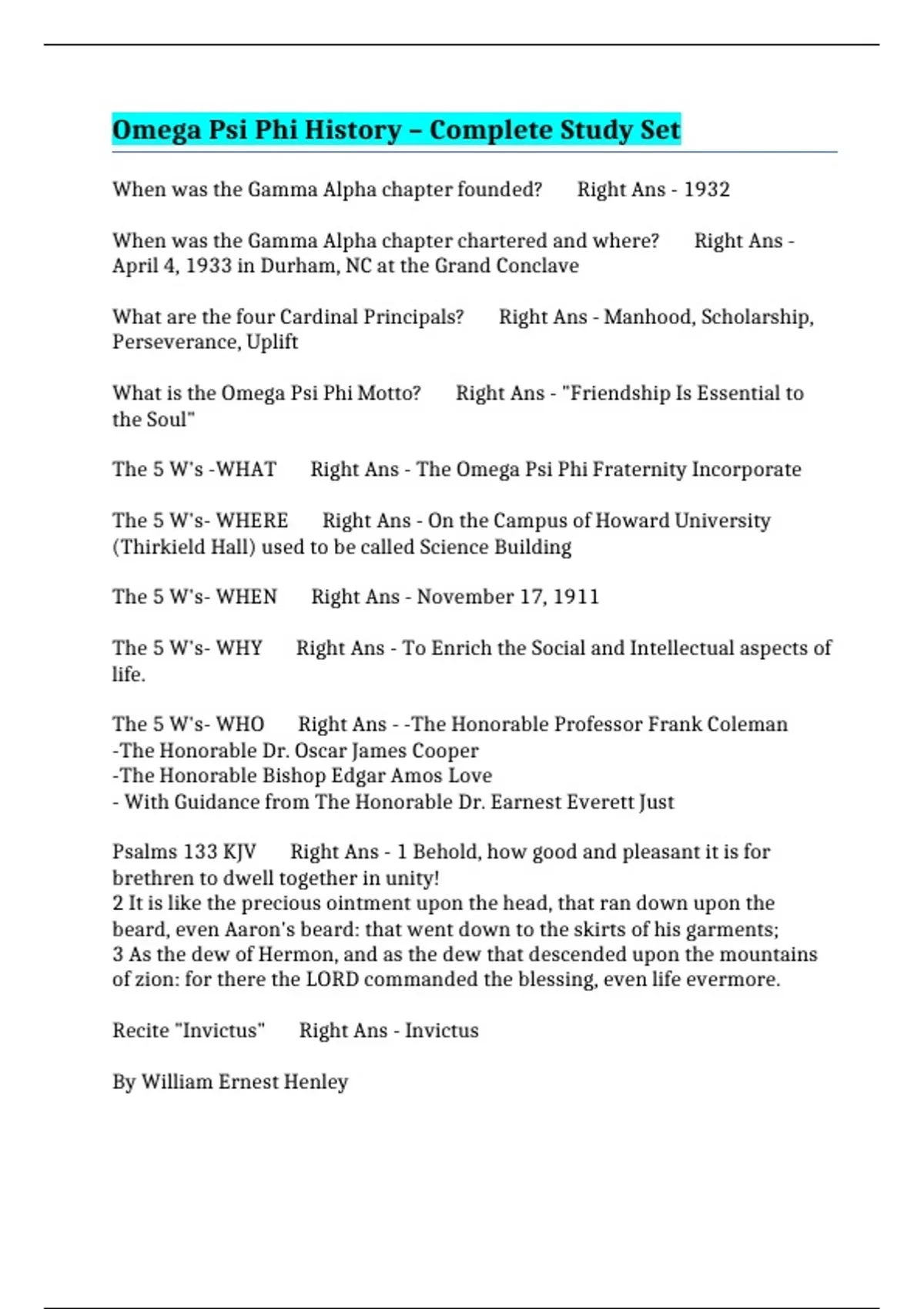 The 5 W's -WHAT Right Ans - The Omega Psi Phi Fraternity Incorporate
