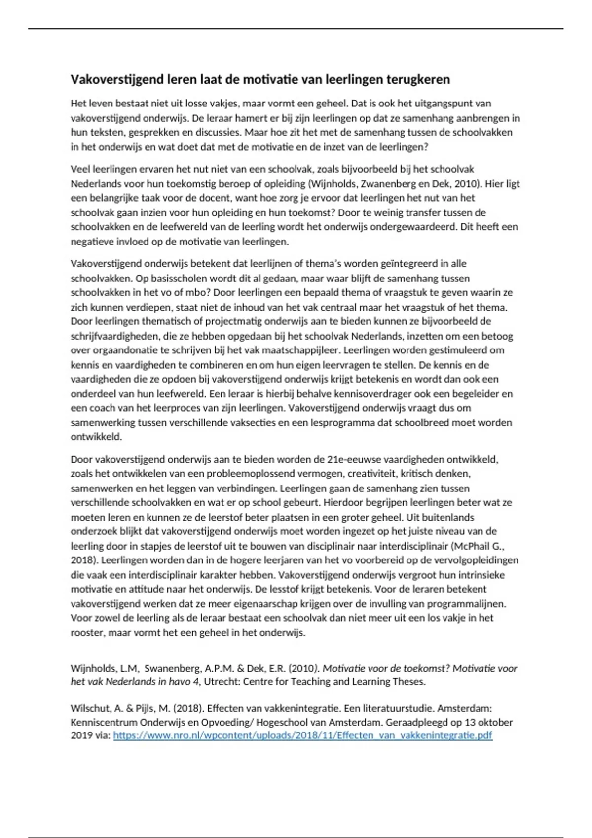 2019 via: https://www.nro.nl/wpcontent/uploads/2018/11/Effecten_van_vakkenintegratie.pdf