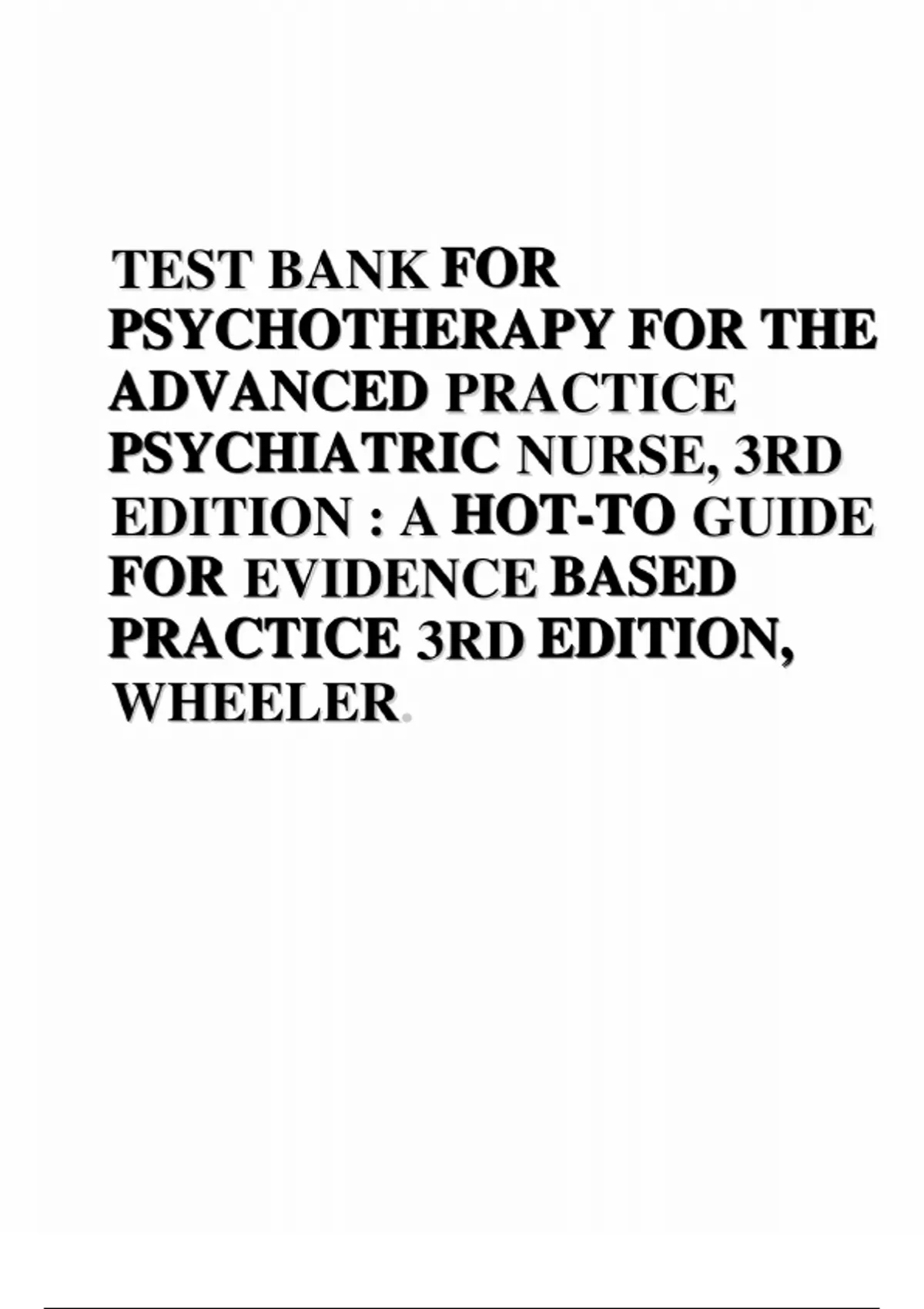 Test Bank for Psychotherapy for the Advanced Practice Psychiatric Nurse: A How-To Guide for Evidence-Based Practice, 3rd Edition, by Kathleen Wheeler, All Chapters 1-24 LATEST