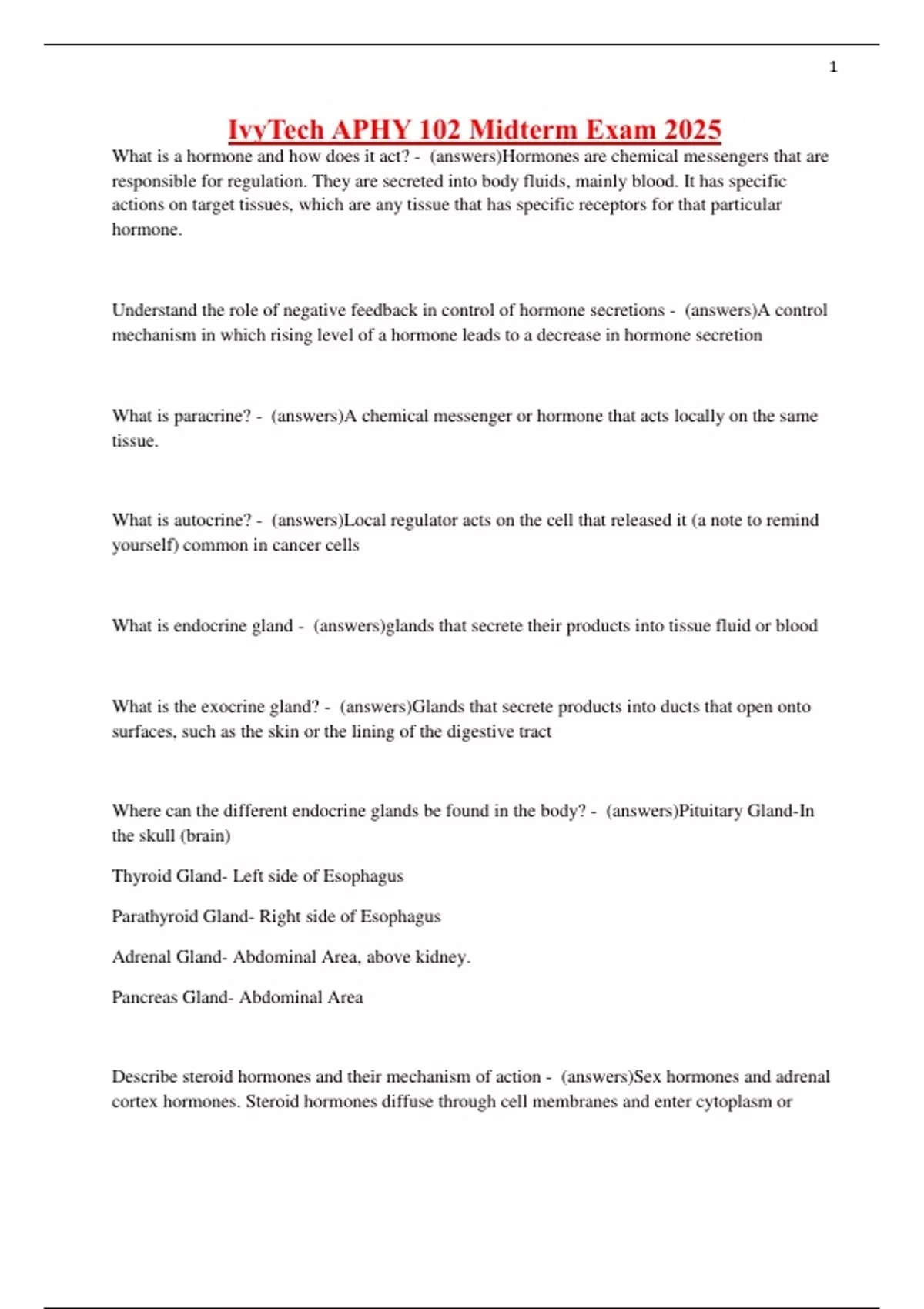 What is paracrine? - (answers)A chemical messenger or hormone that acts locally on the same