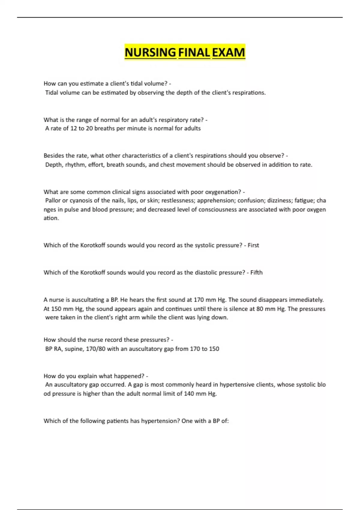 ARnurseRisRausculta ngRaRBP.RHeRhearsRtheRfirstRsoundRatR170RmmRHg.RTheRsoundRdisappearsRimmediately.R