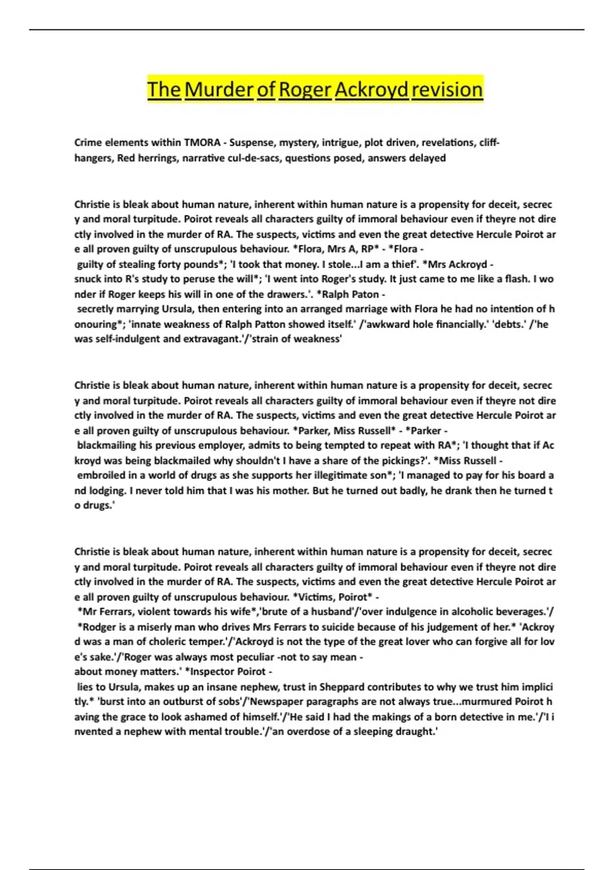 The Murder of Roger Ackroyd revision RATED 100% ACCURATE