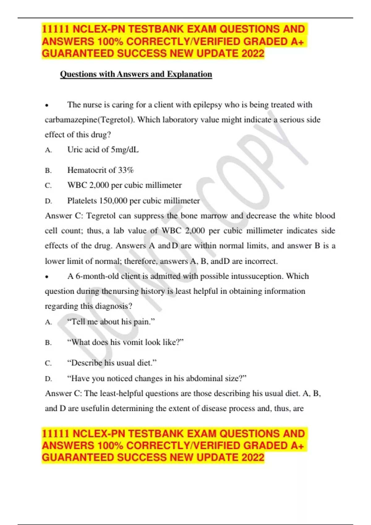 11111 NCLEX-PN TESTBANK EXAM QUESTIONS AND