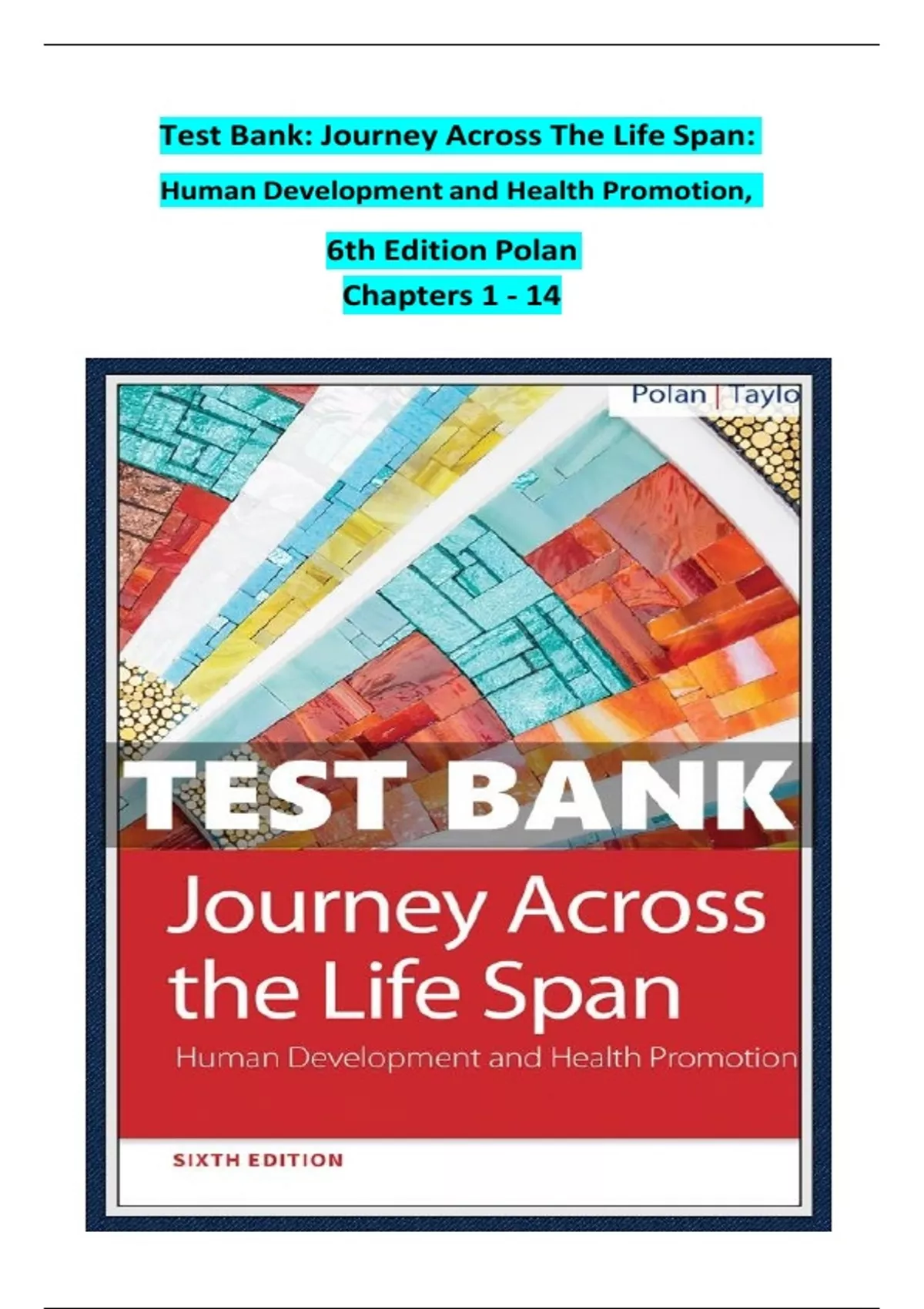 Enhance your understanding of human development and health promotion with our comprehensive test bank for "Journey Across The Life Span: Human Development and Health Promotion, 6th Edition" by Elaine U. Polan and Daphne R. Taylor. This indispensable resource covers all 14 chapters of the textbook, providing a wide range of meticulously crafted questions designed to thoroughly prepare you for exams and practical applications in nursing and health education. Our test bank includes multiple-choice questions, true/false statements, short-answer questions, and essay questions, all based on real-life scenarios to help you apply theoretical knowledge effectively. Each question covers key topics such as stages of human development, health promotion strategies, and nursing practices, ensuring you meet industry standards. Detailed rationales and step-by-step solutions accompany each question, enhancing your comprehension and problem-solving skills. Created by field experts, this test bank guarantees high-quality, accurate content presented in a user-friendly format. Ideal for certification exam preparation and practical knowledge, it provides valuable insights, making it the perfect companion for your studies in human development and health promotion. Equip yourself with this essential tool and excel in your academic and professional journey. Happy studying!