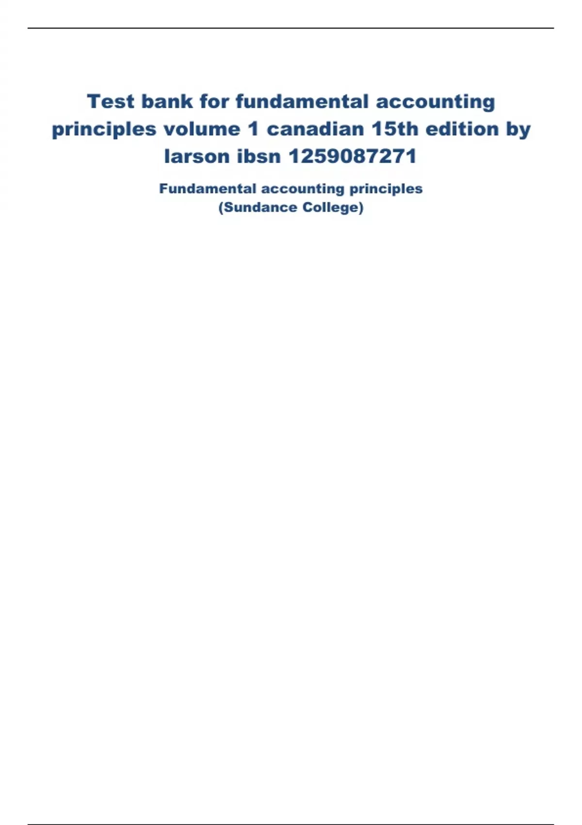 Test Bank for Fundamental Accounting Principles Volume 1 Canadian 15th Edition by Larson IBSN