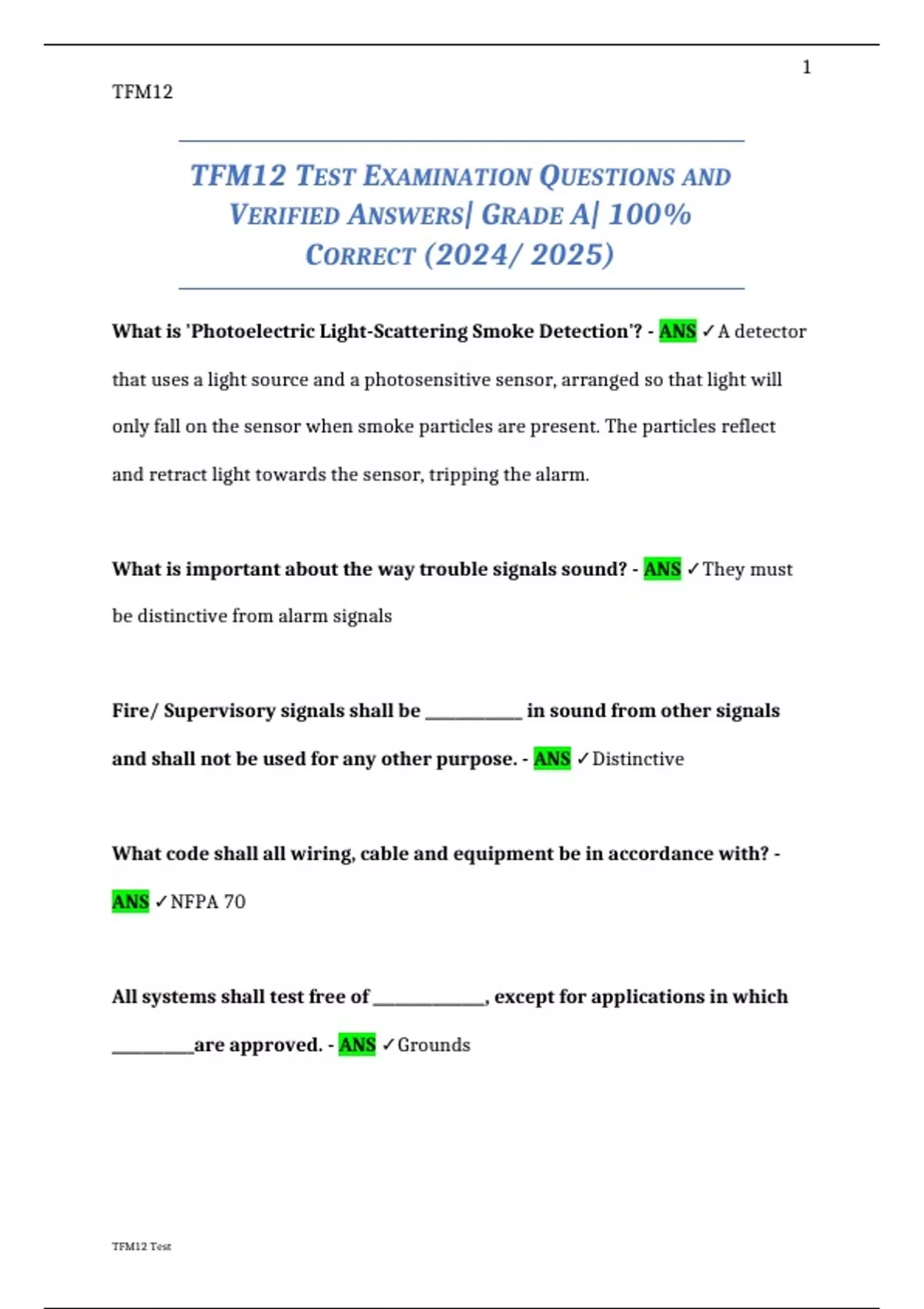 TFM12 TEST EXAMINATION QUESTIONS AND VERIFIED ANSWERS| GRADE A| 100% CORRECT (2024/ 2025)