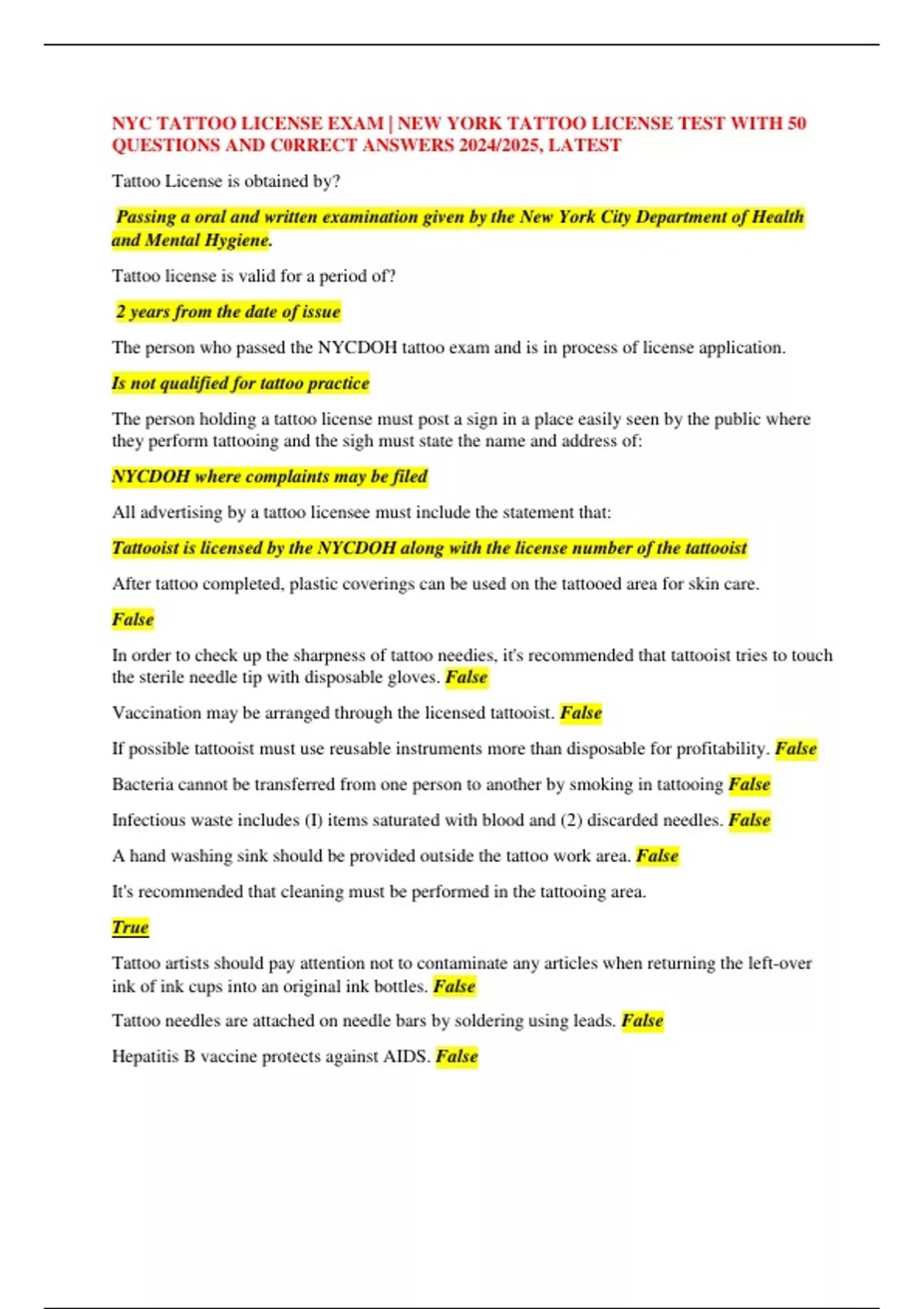 NYC TATTOO LICENSE EXAM | NEW YORK TATTOO LICENSE TEST WITH 50