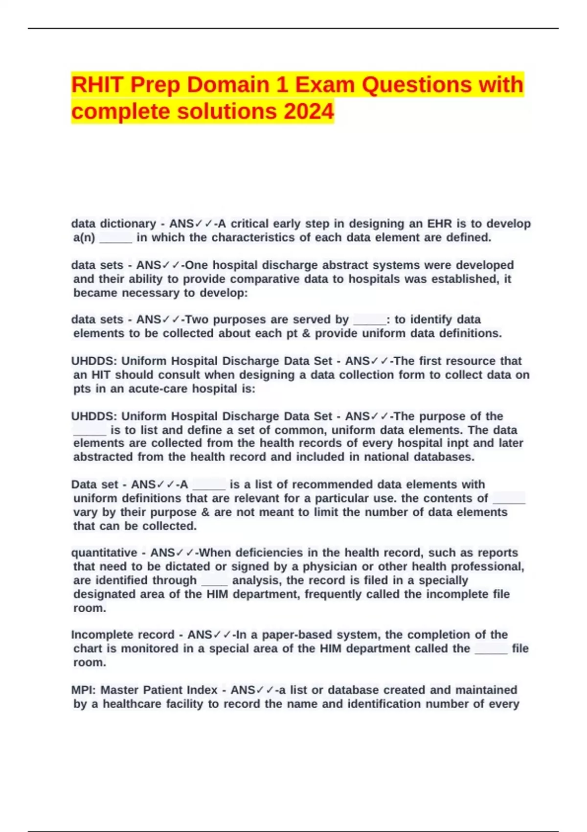 RHIT Prep Domain 1 Exam Questions with complete solutions 2024.
